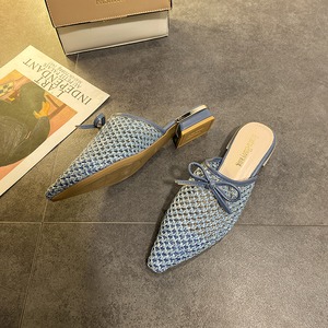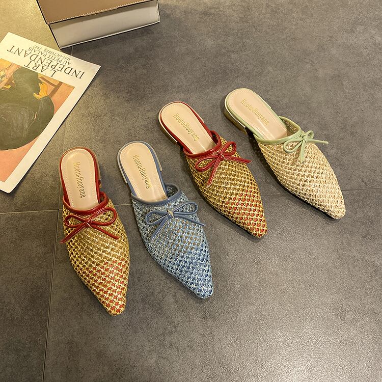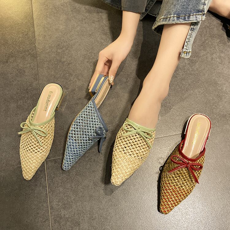 包頭スリッパ女性は2020年春と夏の新しいファッション野生ネット赤イン潮織りムーラーサンダルを着用します 部族の婦人靴4573908