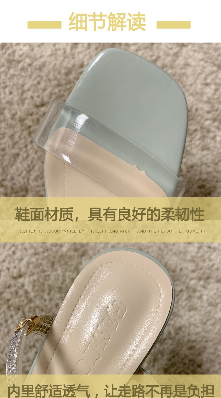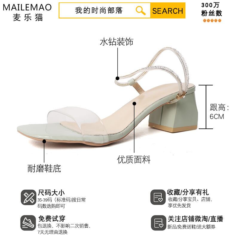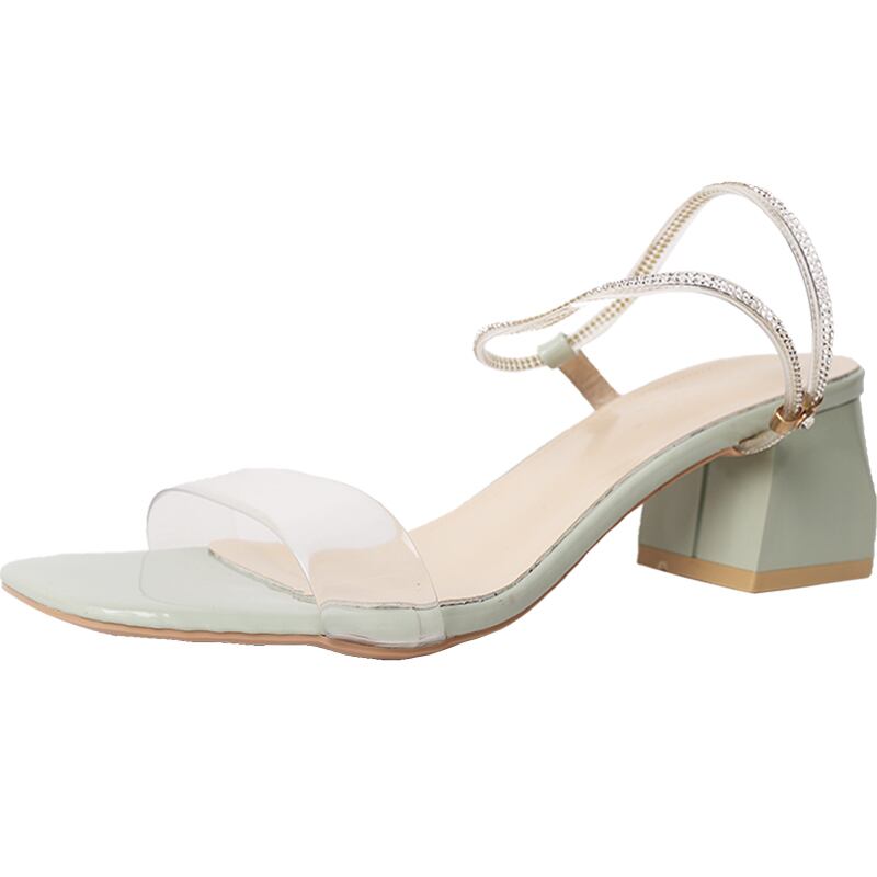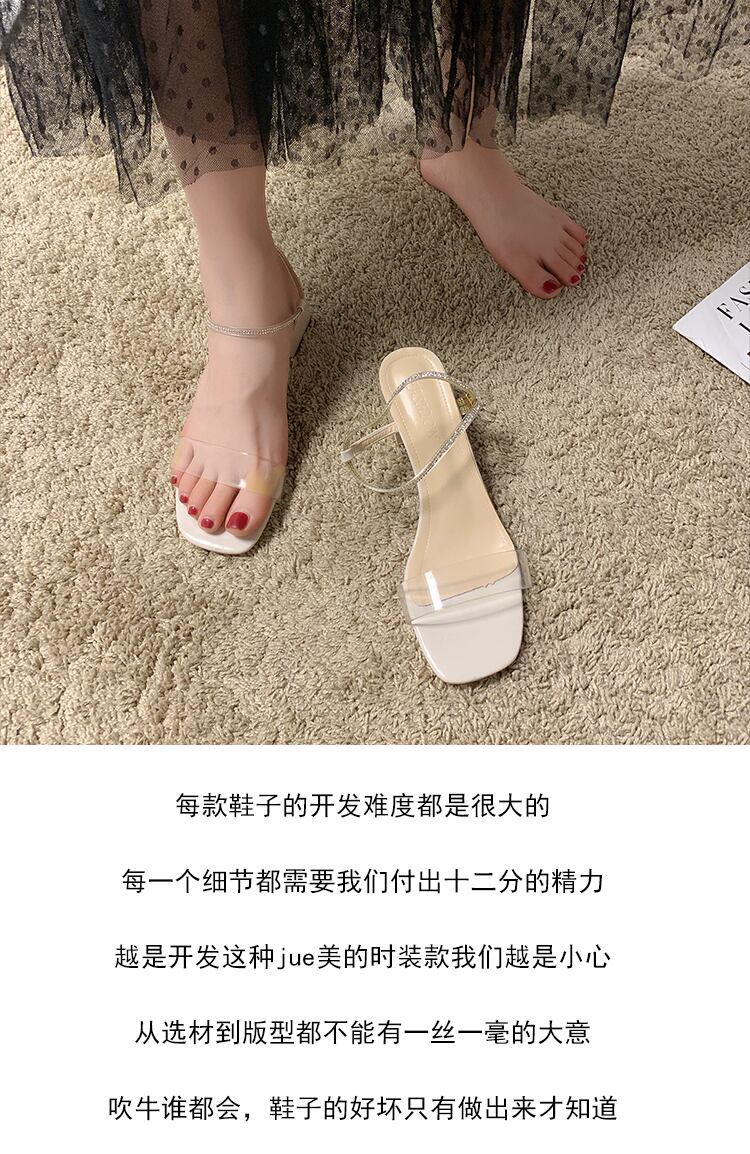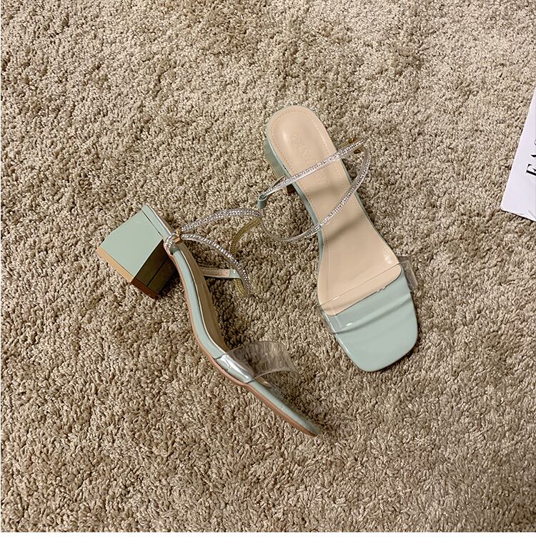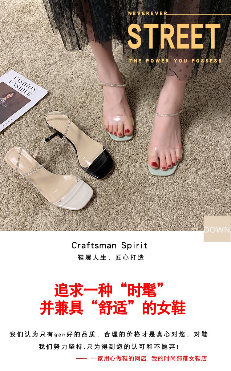 厚いヒールサンダル女性2020新しいスタイルの夏のファッションレディース正方形つま先ラインストーンワードベルトローマの靴ハイヒール 部族の婦人靴55865234032