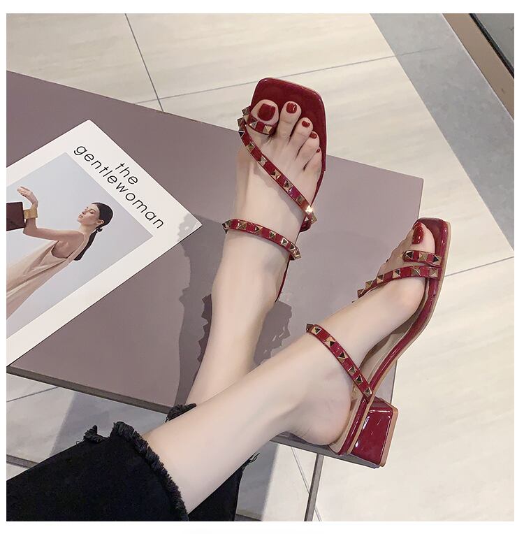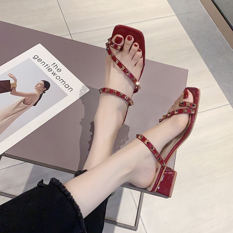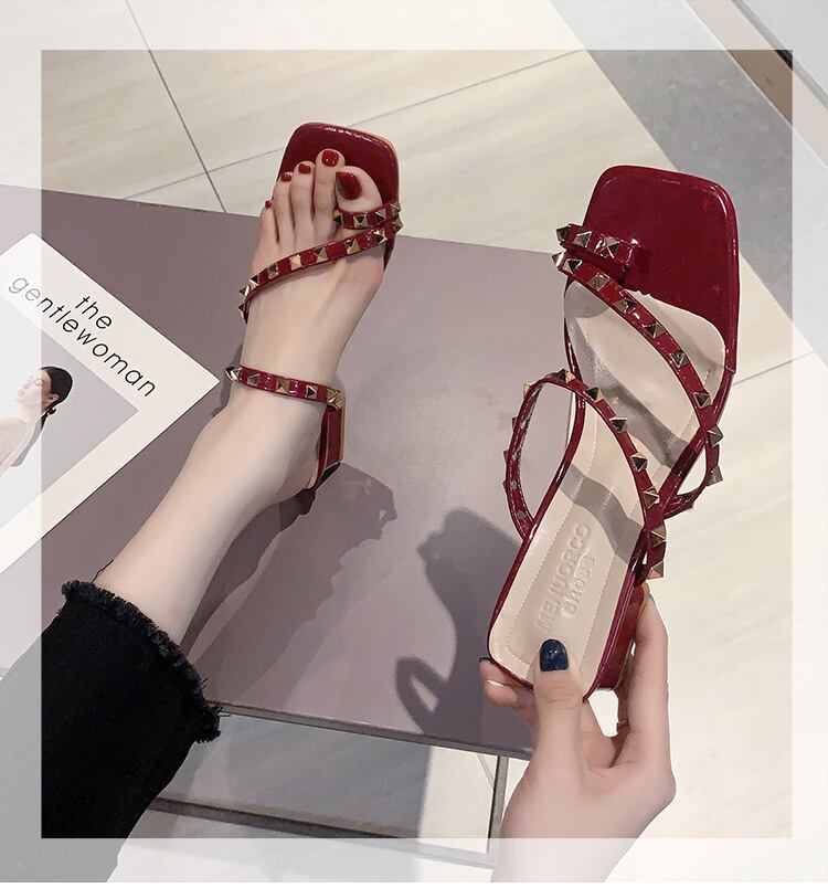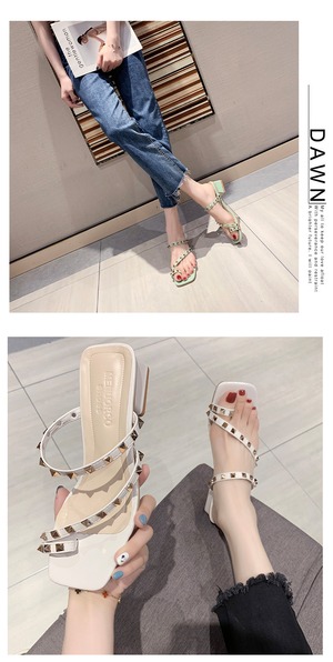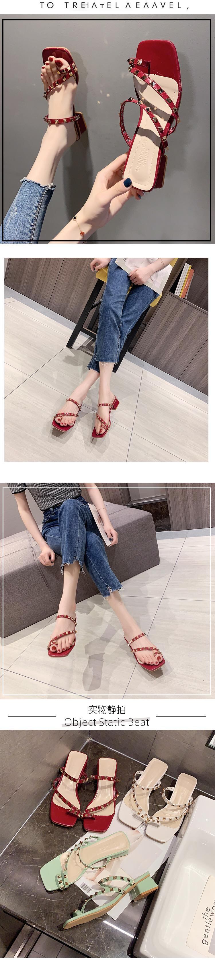 サンダルとスリッパレディースアウター2020新しい夏のリベットミッドヒールビーチサンダルレディース牽引ネットレッドサンダル女性のトレンド 部族の婦人靴73842230584