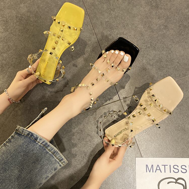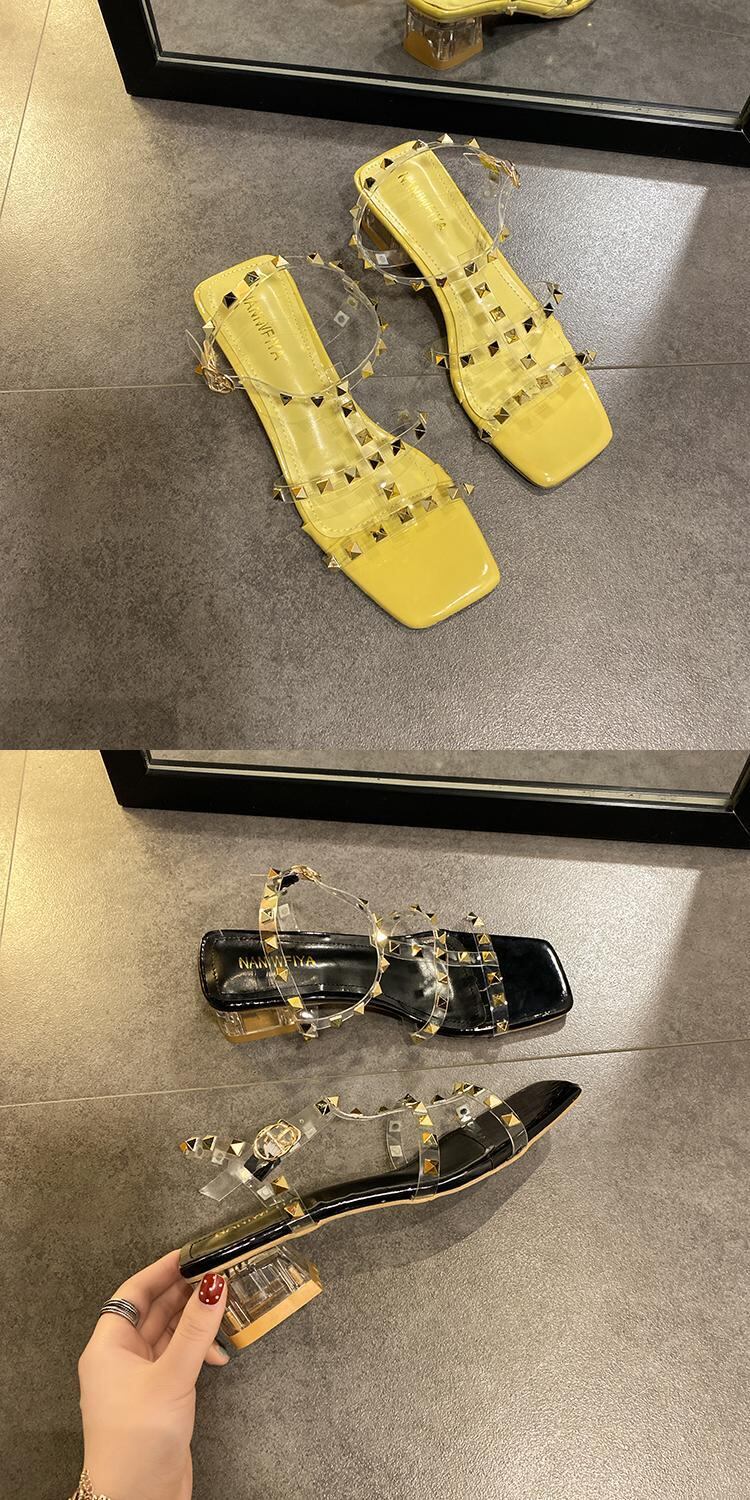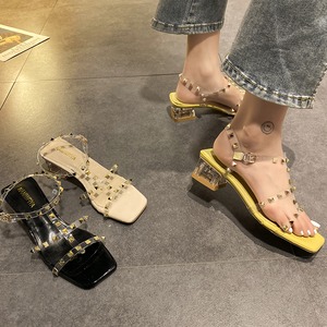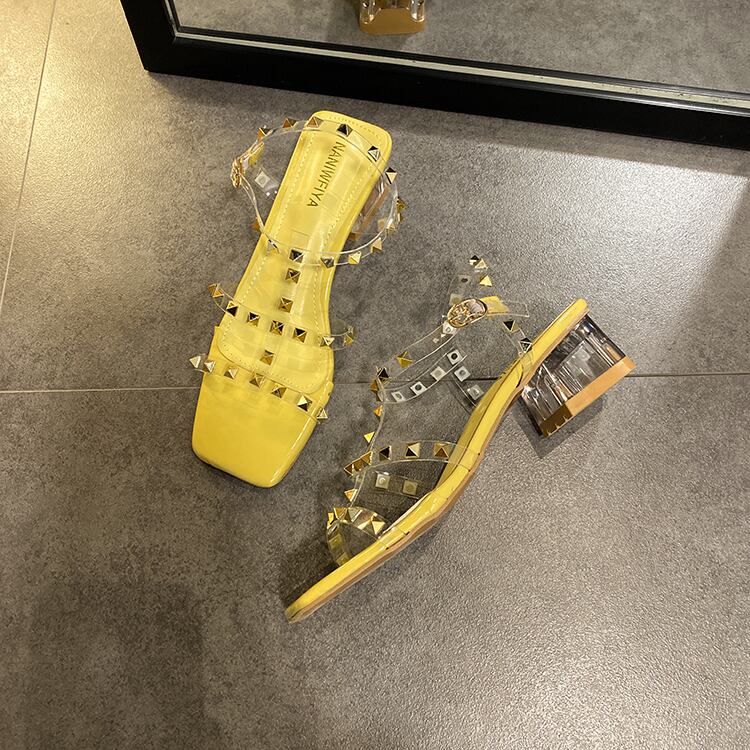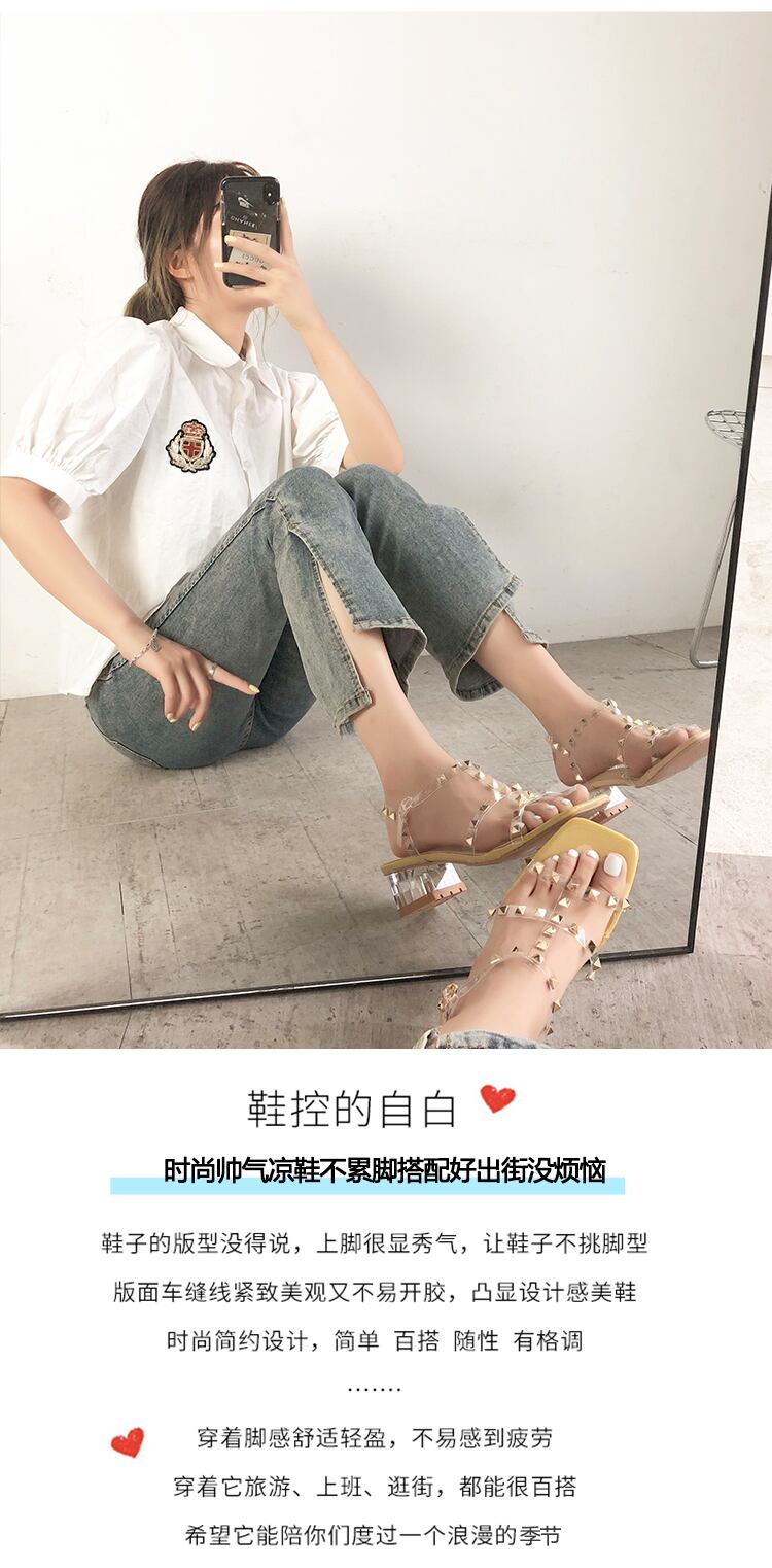 小さな新鮮なサンダル女性2020新しい夏のファッション野生の透明な厚いヒール正方形のつま先ネット赤い妖精スタイルローマの靴 部族の婦人靴8306495