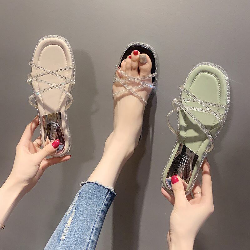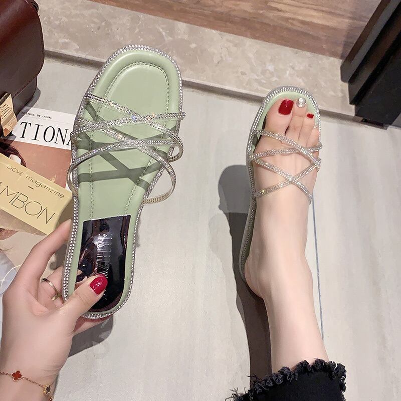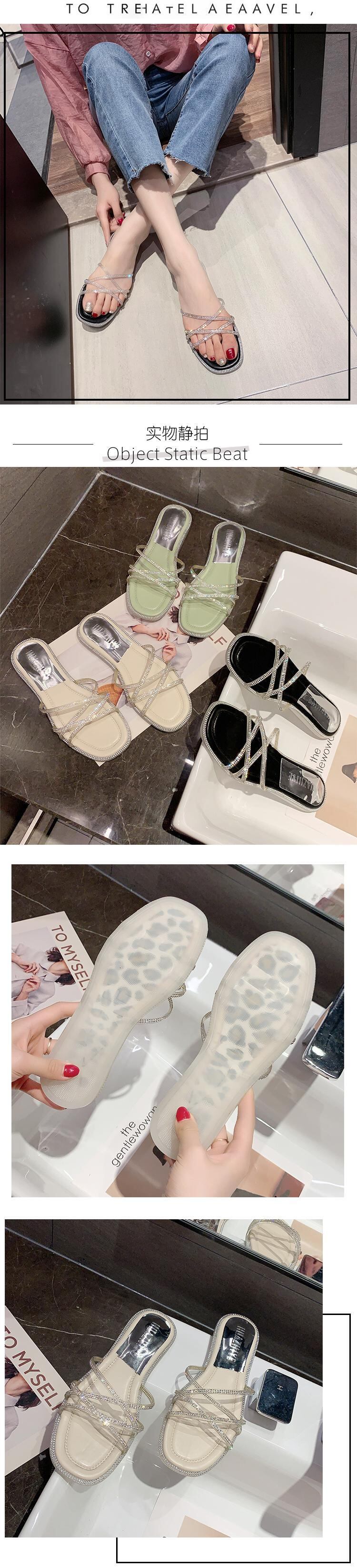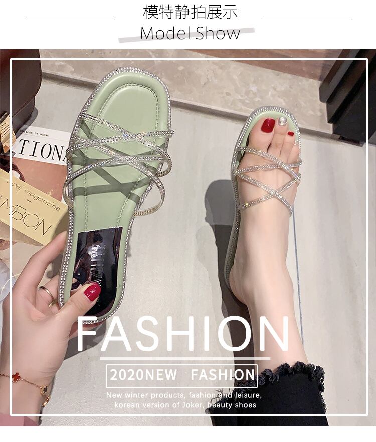 スリッパ女性アウターファッション2020夏の新しいラインストーンソフトボトム薄いベルトトロールレッドフラットボトムサンダル 部族の婦人靴9236380
