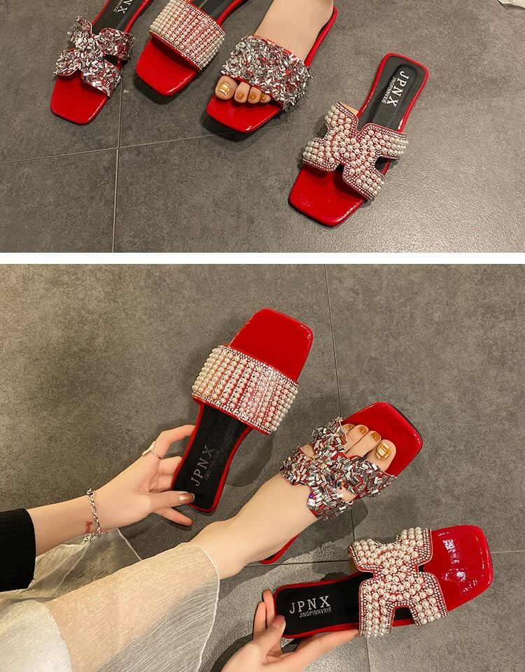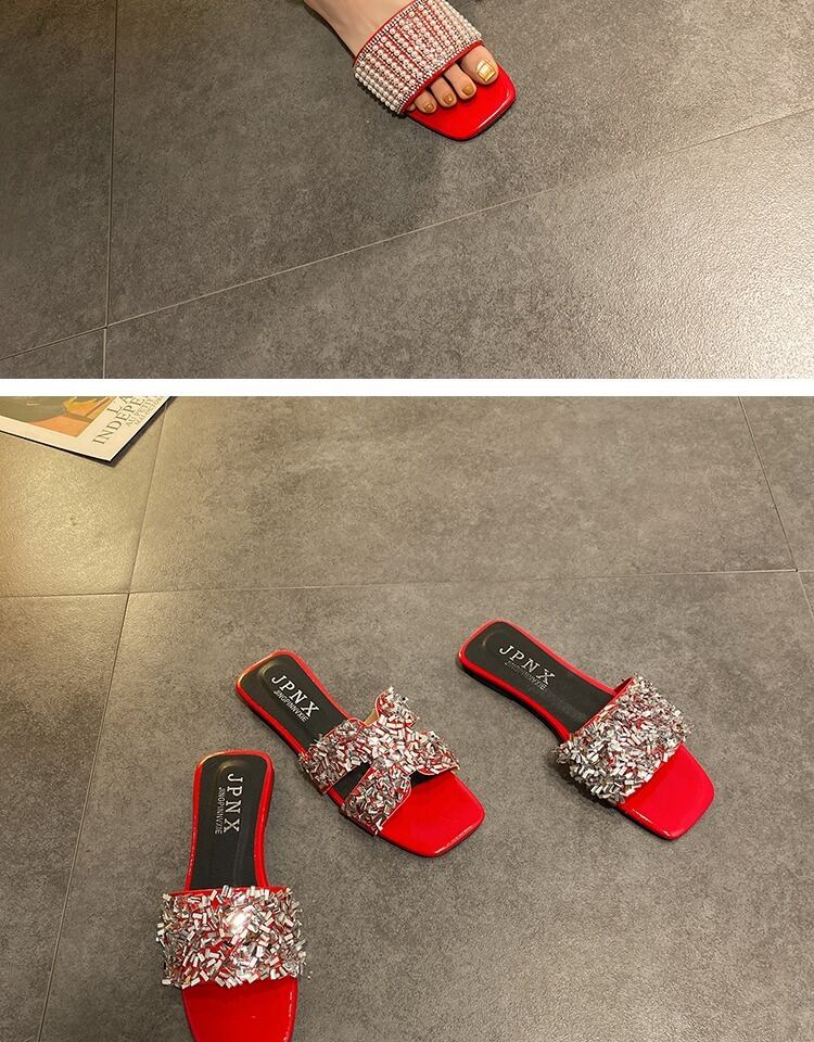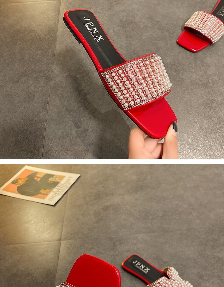 野生のオープントゥパールスリッパファッションウェアサンダルとスリッパの女性のフラットボトムフリップフロップの2020年夏の新バージョン 部族の婦人靴4535641