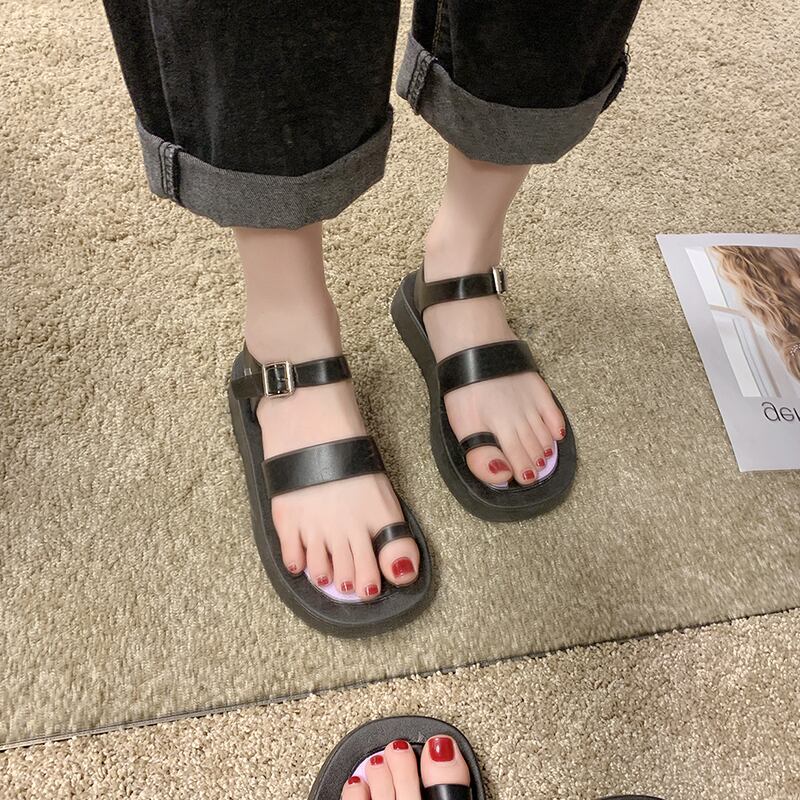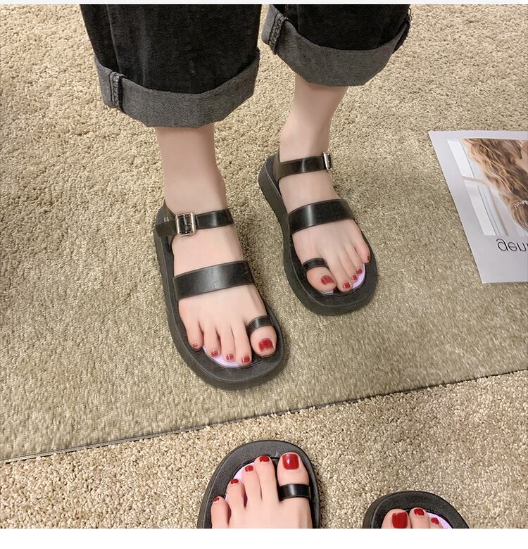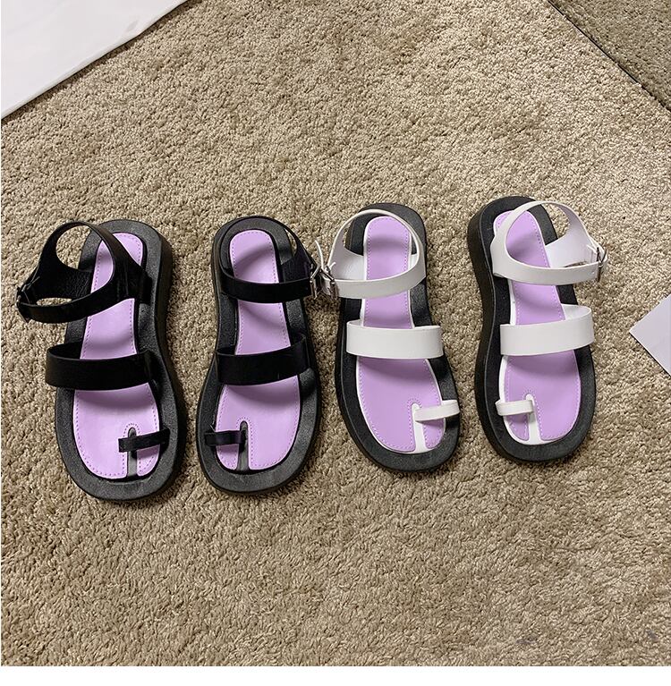 女性のサンダル2020新しい夏のファッションワイルドネット赤フラットシューズつま先ストラップ妖精スタイルサンダルとスリッパ 部族の婦人靴90245456391