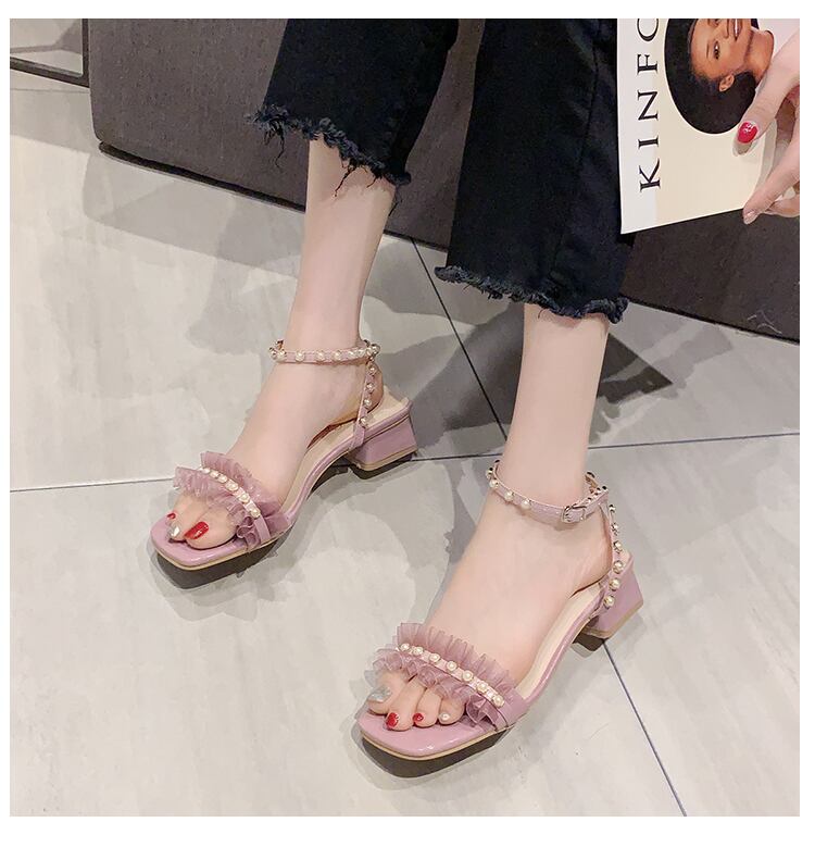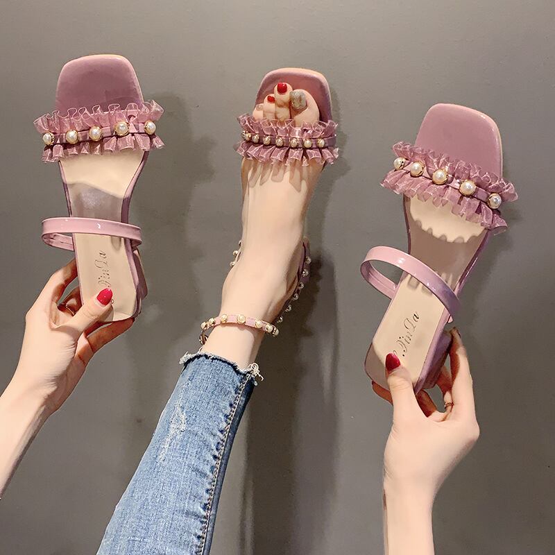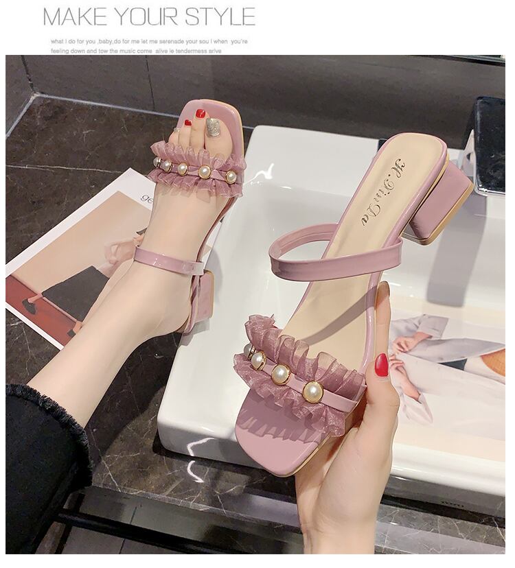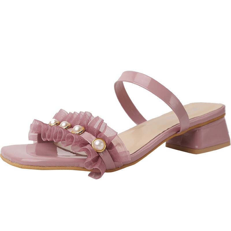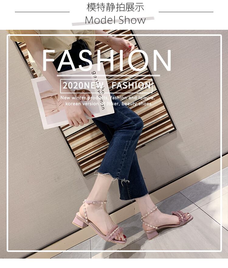 純赤のサンダルとスリッパの女性のアウター2020年夏の新しいファッションパールカジュアル厚ヒールローマサンダル女性のトレンド 部族の婦人靴6641779