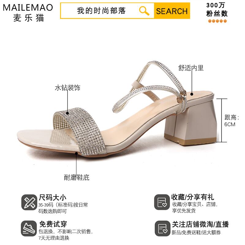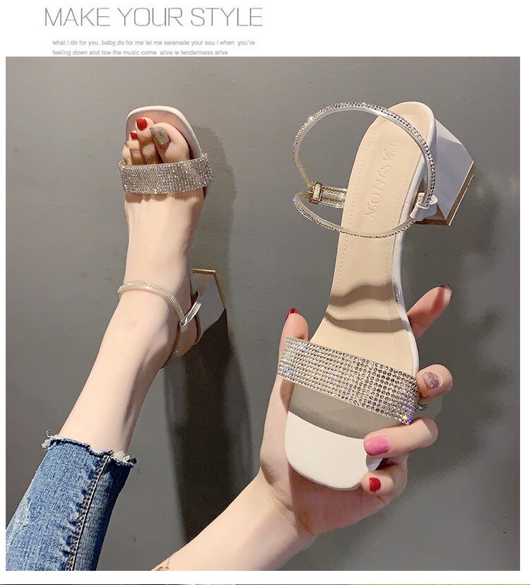厚いヒールのサンダルレディース2020夏の新しいファッションワイルドインタイドファッションネット赤いラインストーン妖精スタイルハイヒール 部族の婦人靴9644952