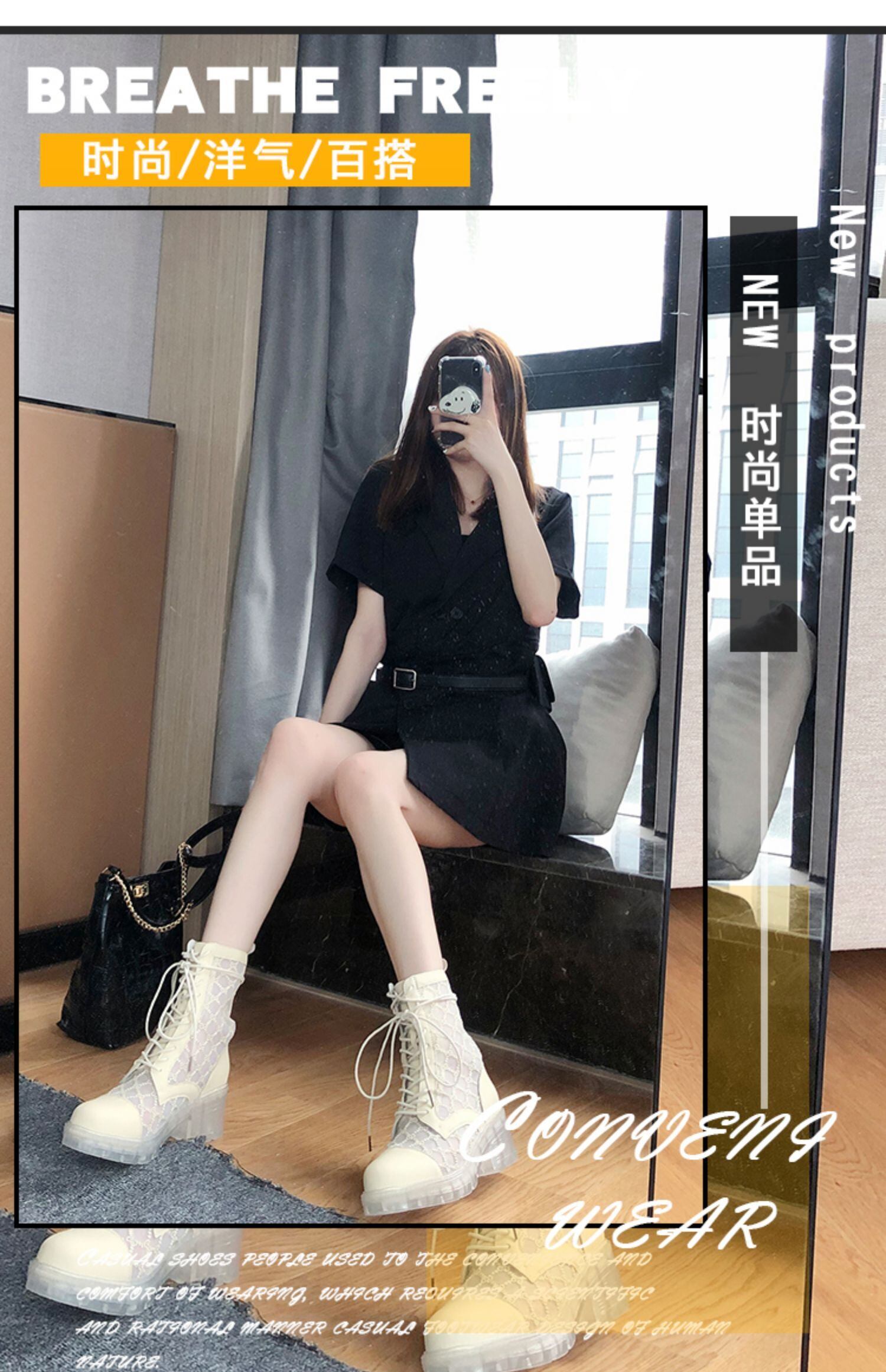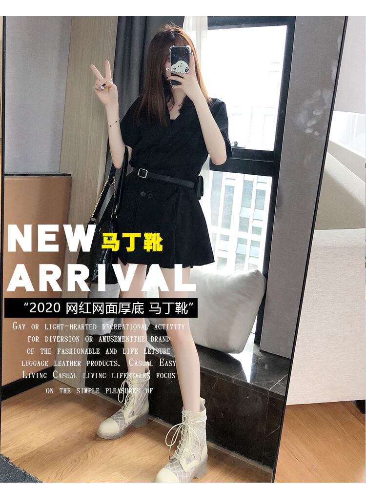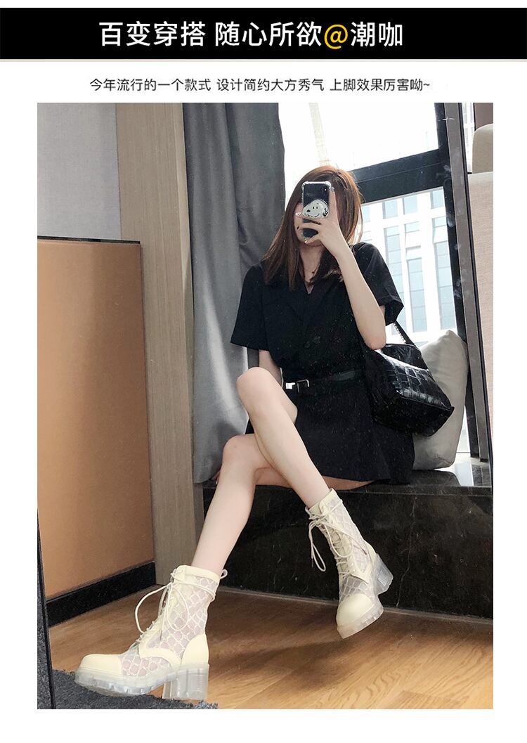 ネットレッド透明クリスタルボトム2020新しいマーチンブーツ女性の夏の薄い厚いヒールショートブーツレースメッシュサンダル 部族の婦人靴80728336409