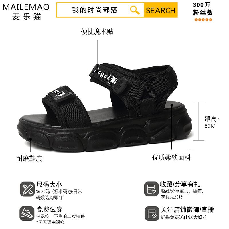 サンダルレディースインタイド2020新夏レディースシューズオールマッチネットレッドノンスリップ厚底学生ベルクロカジュアルシューズ 部族の婦人靴38270652300