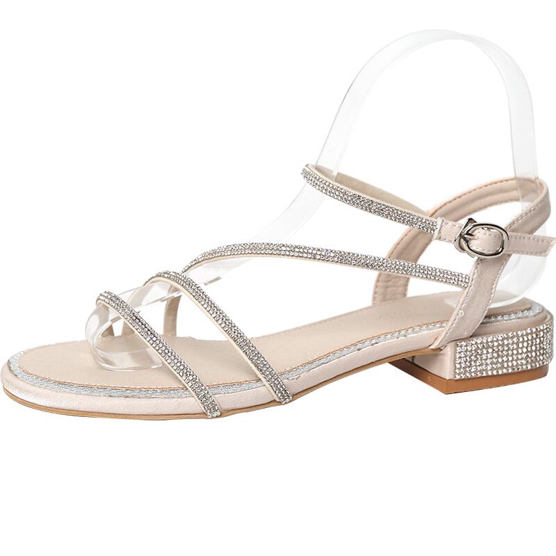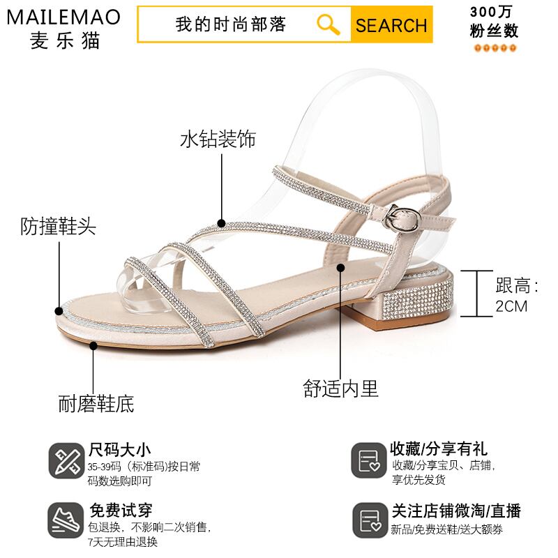 厚いヒールのサンダルの女性2020年夏の新しい野生のネット赤いファッションラインストーンローヒールバックルローマの靴 部族の婦人靴77076829983