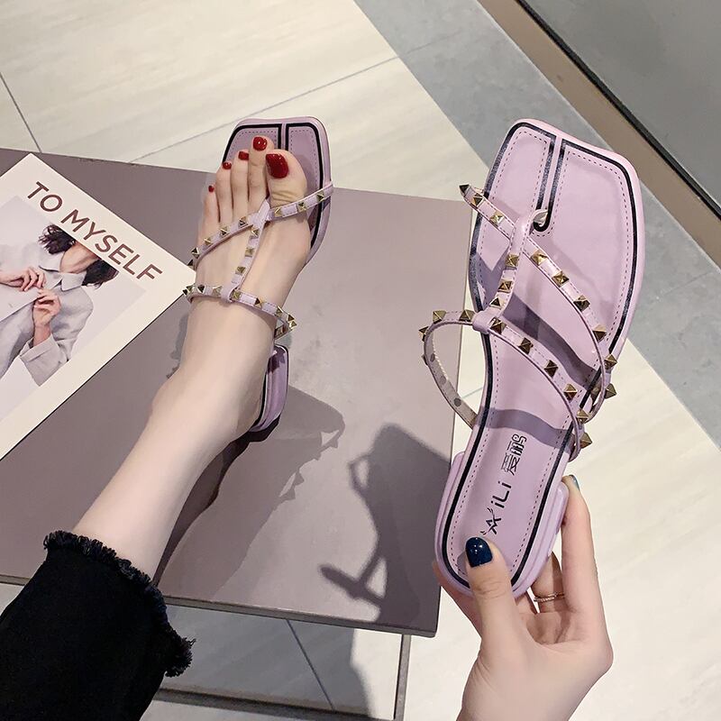 ローマンスタイルのサンダルとスリッパレディースアウター2020新しい夏のネット赤のファッションクリップ足すべて一致リベットのフリップフロップ 部族の婦人靴22696930716