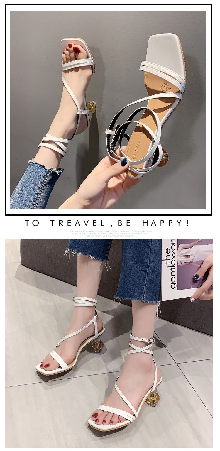 純赤のサンダル女性2020年夏の新しいファッションハイヒールの女性とオールマッチクリスタルと妖精スタイルの言葉 部族の婦人靴8838751