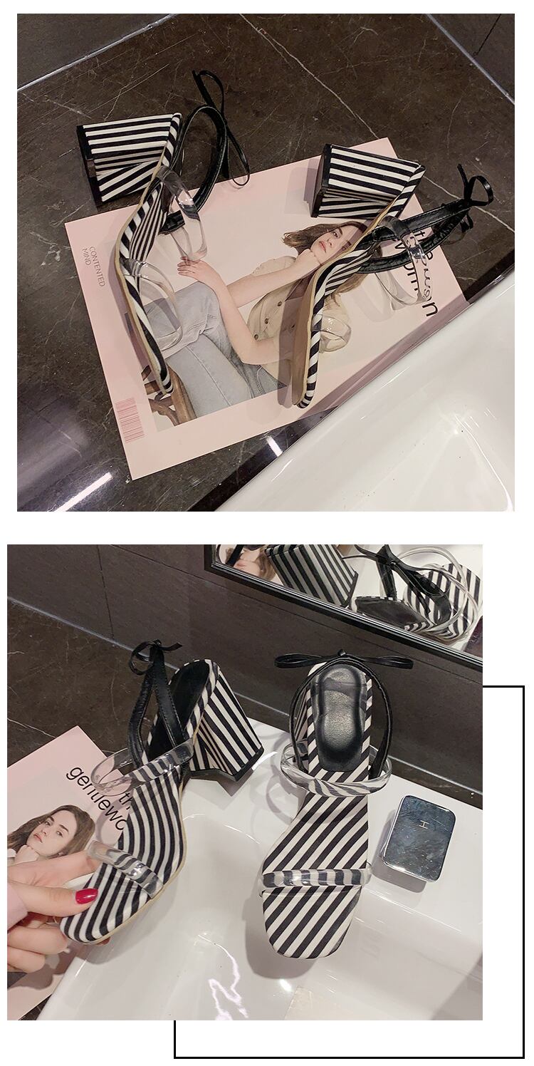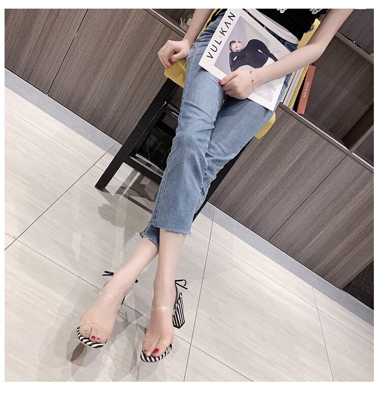 ヒールのサンダル女性2020年夏の野生の透明な1単語のバックルの厚いヒールのセクシーな妖精スタイルの女性の靴の新しいバージョン 部族の婦人靴1192803