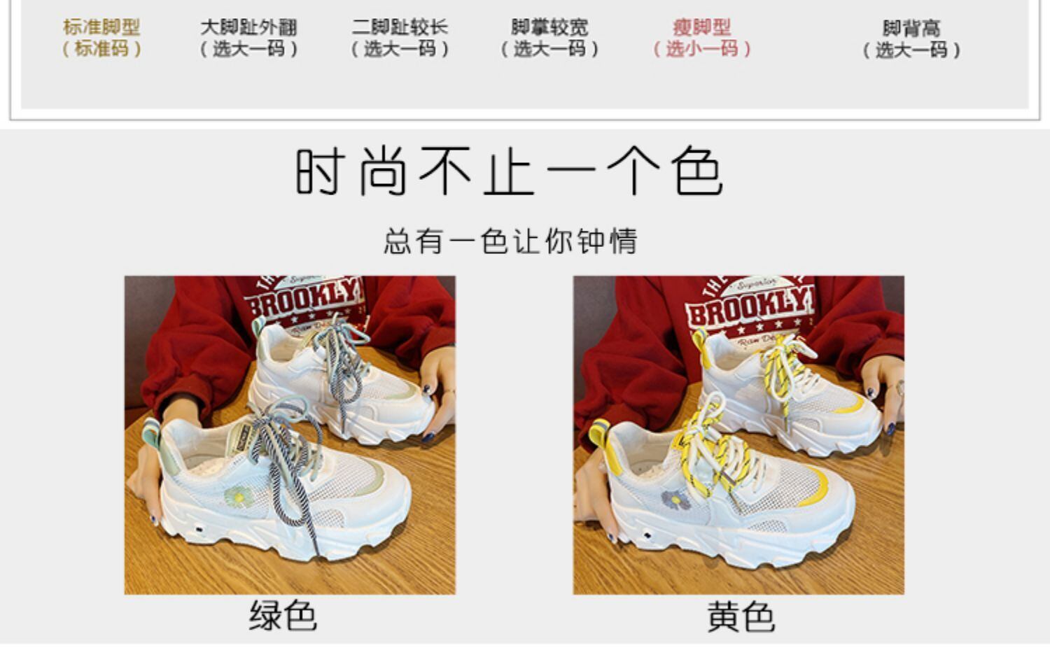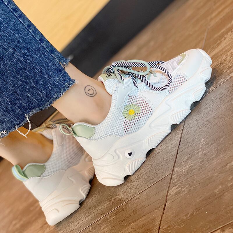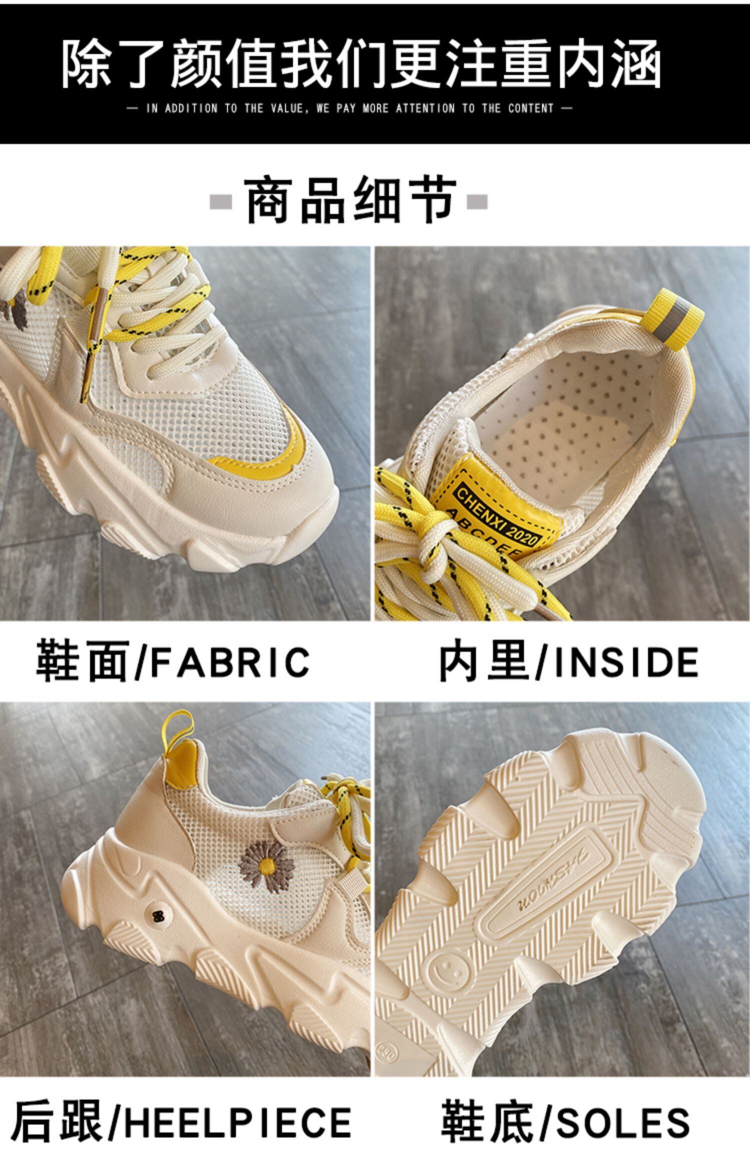 女性のスポーツカジュアルシューズins潮2020春の新しいファッション野生のスーパーファイヤー厚底通気性ネット赤パパ靴 部族の婦人靴6876673