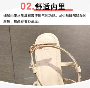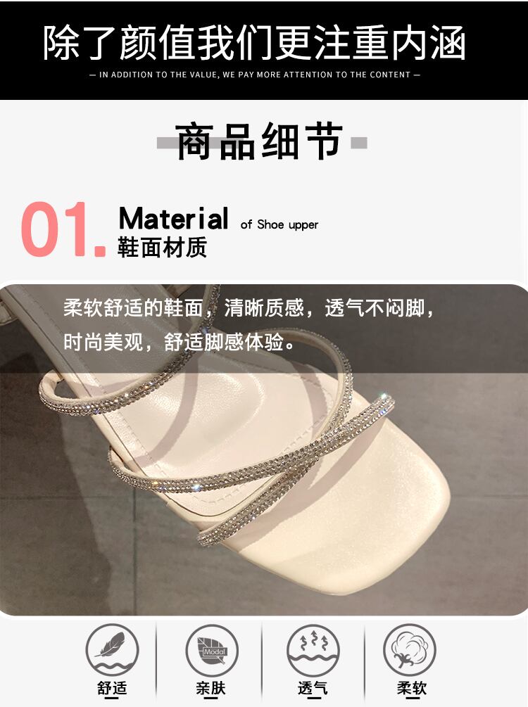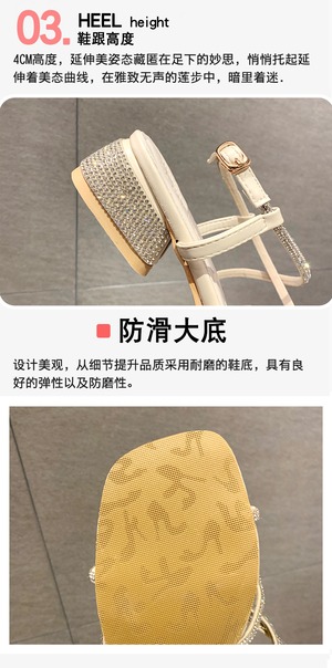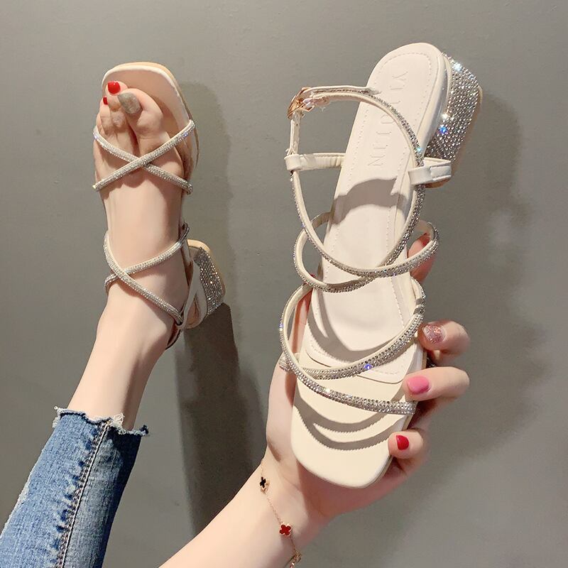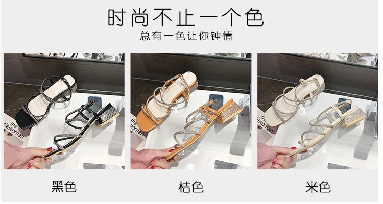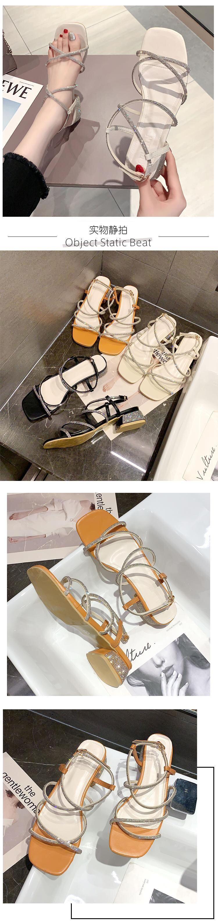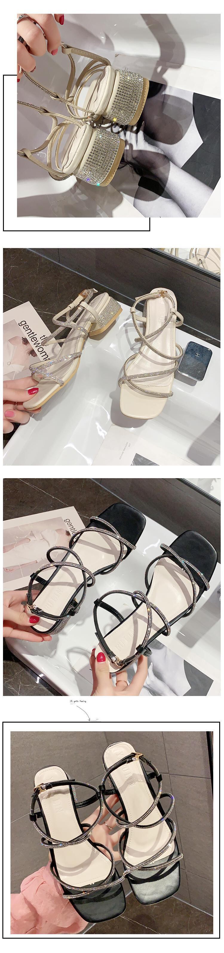 サンダル女性2020新しいファッション夏の野生のラインストーンスクエアトゥネット赤いファッション厚いヒールレディースハイヒール 部族の婦人靴2042233