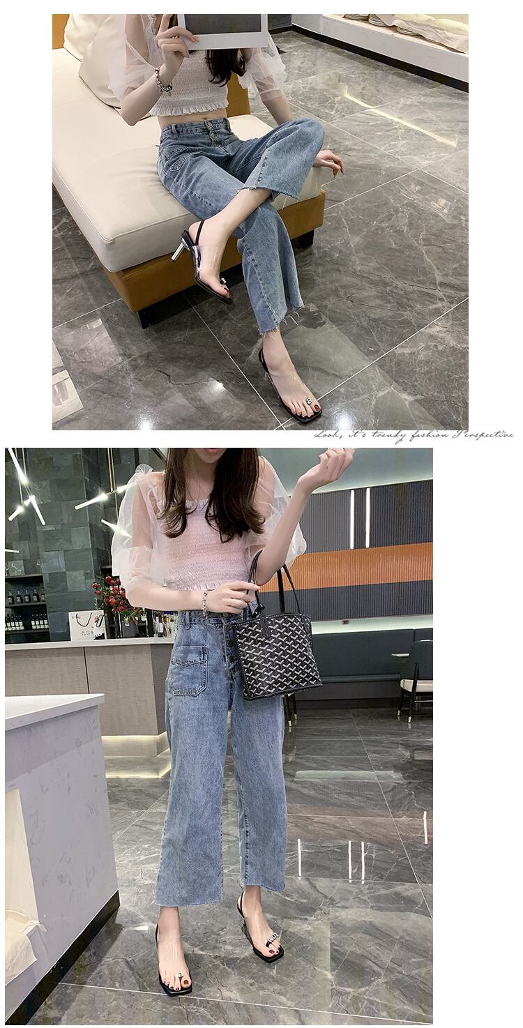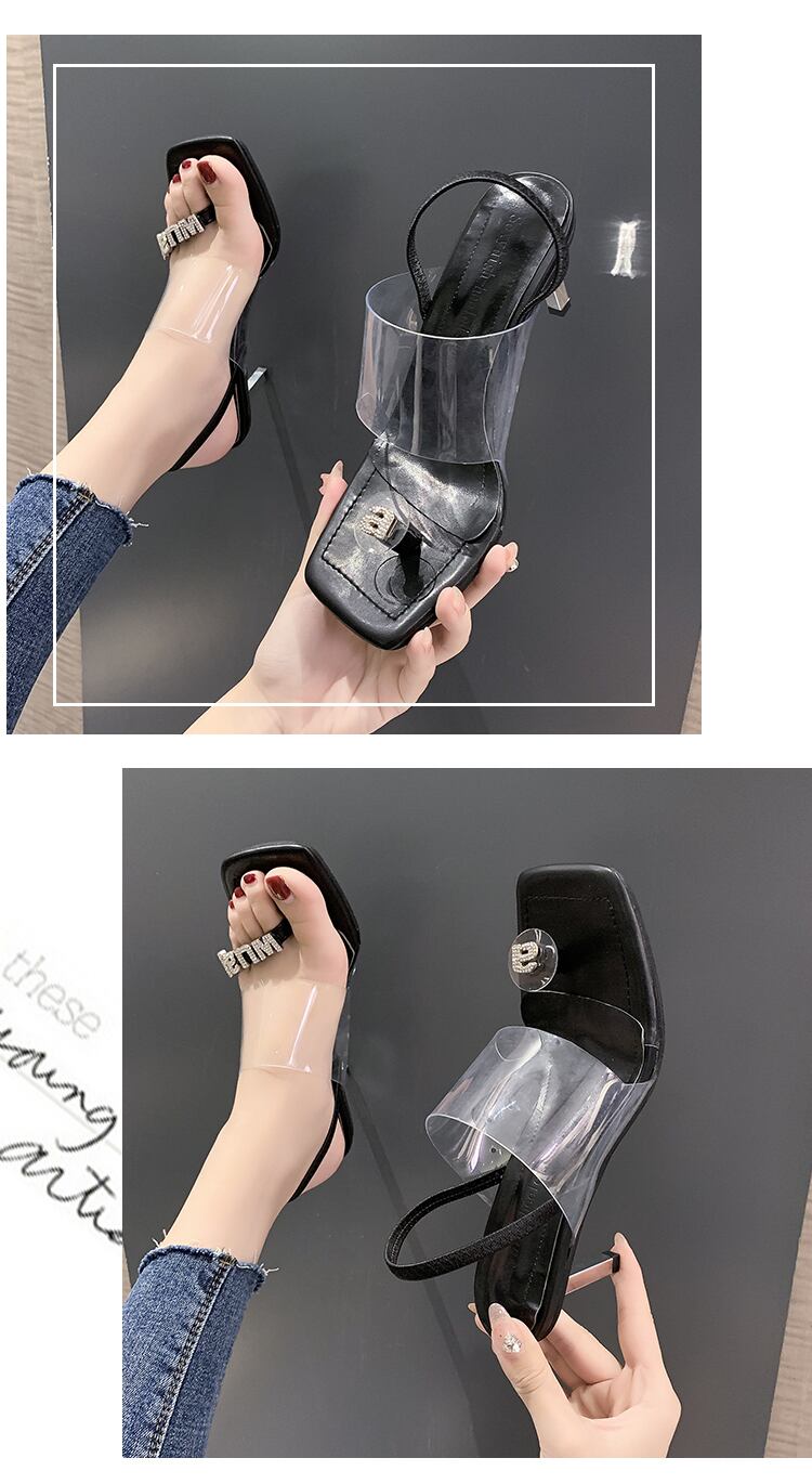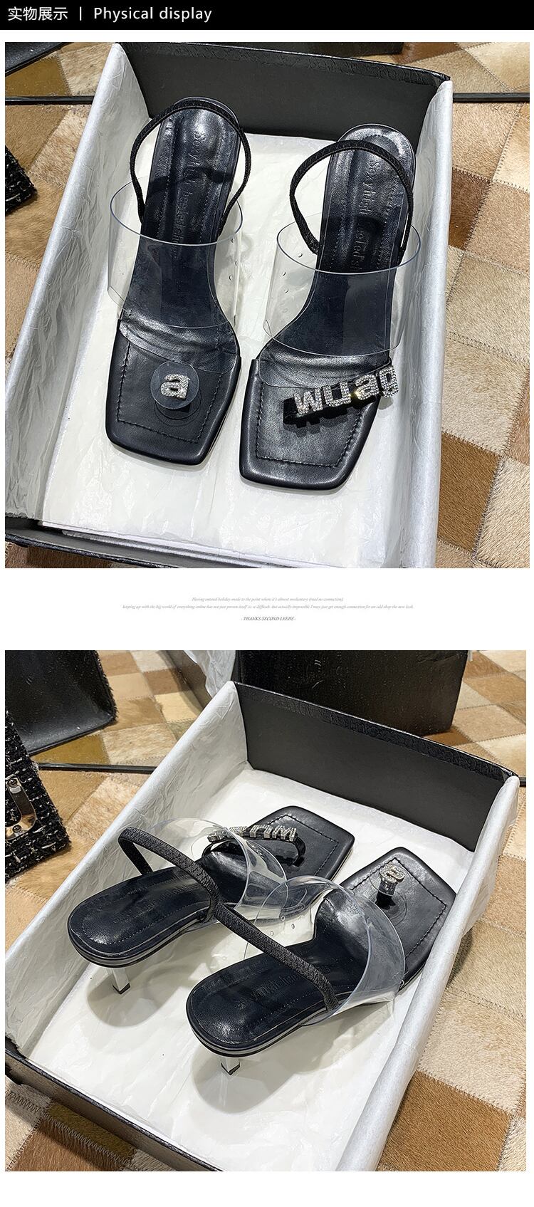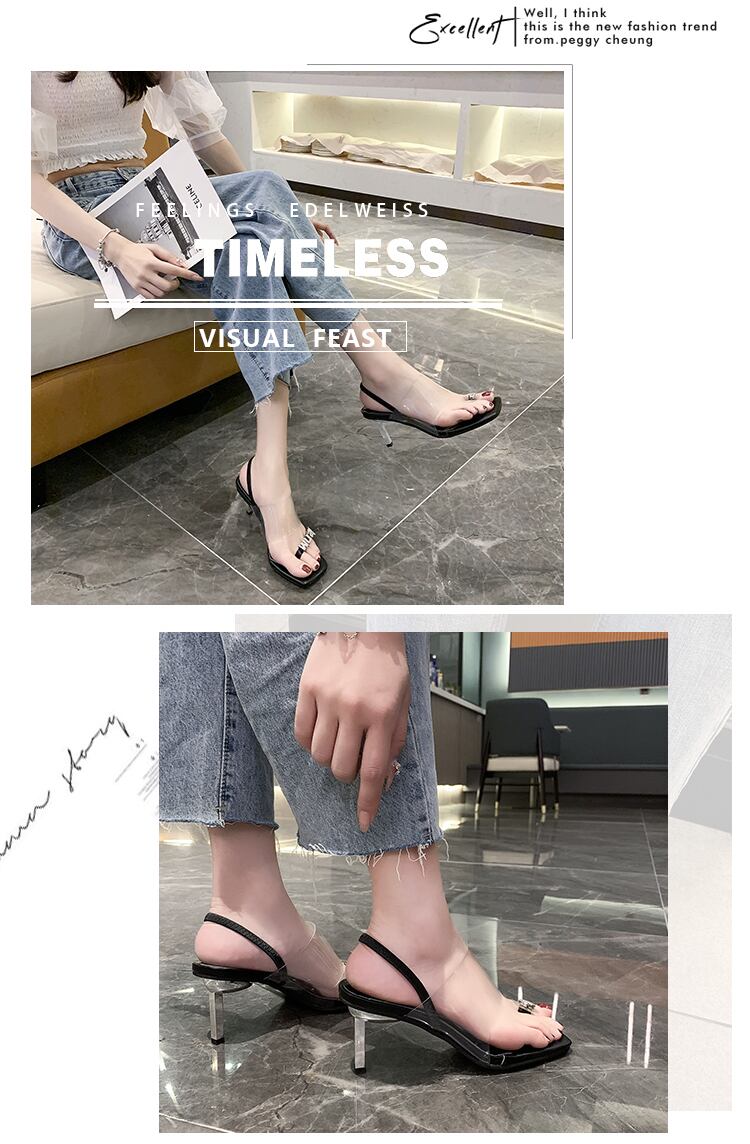 野生の透明なラインストーンの正方形のつま先の細かいヒールネット赤いハイヒールの女性のサンダル女性insタイド2020夏の新バージョン 部族の婦人靴0389939