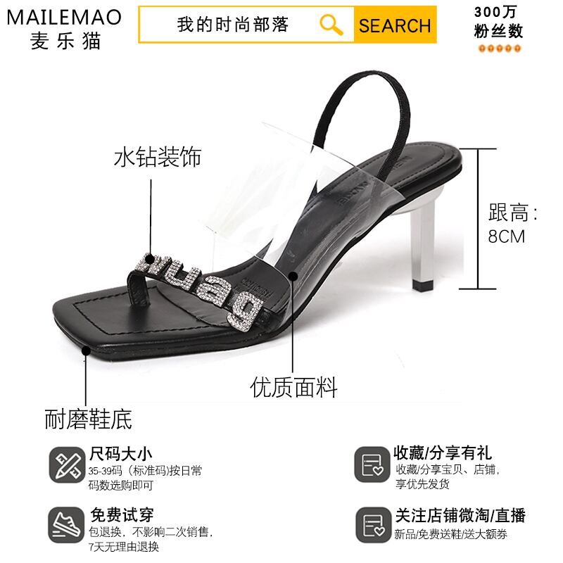 ネット赤いサンダル女性2020新しいスティレットファッション野生の妖精スタイル夏ラインストーンハイヒールスリッパ 部族の婦人靴5288231