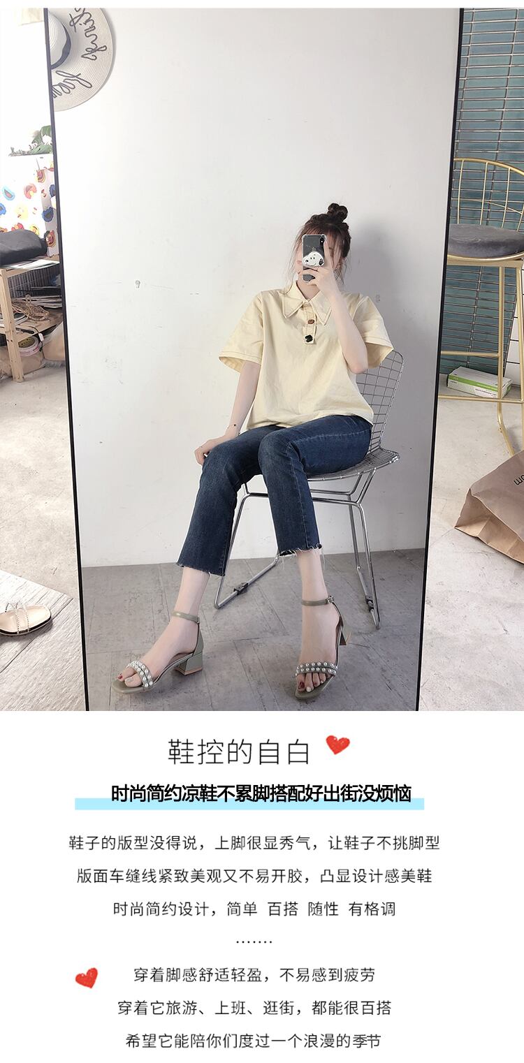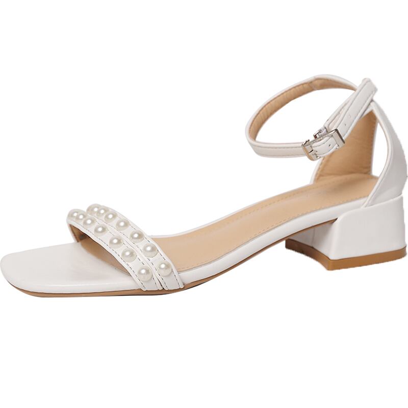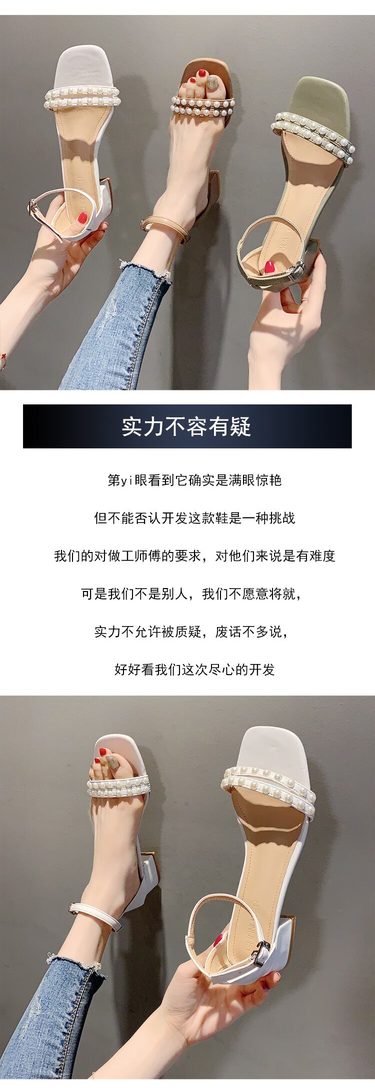 サンダル女性の潮2020年夏の新しいファッションワイルドネットレッドパールスクエアヘッド厚いヒールの妖精スタイルのローマの靴 部族の婦人靴53751959951