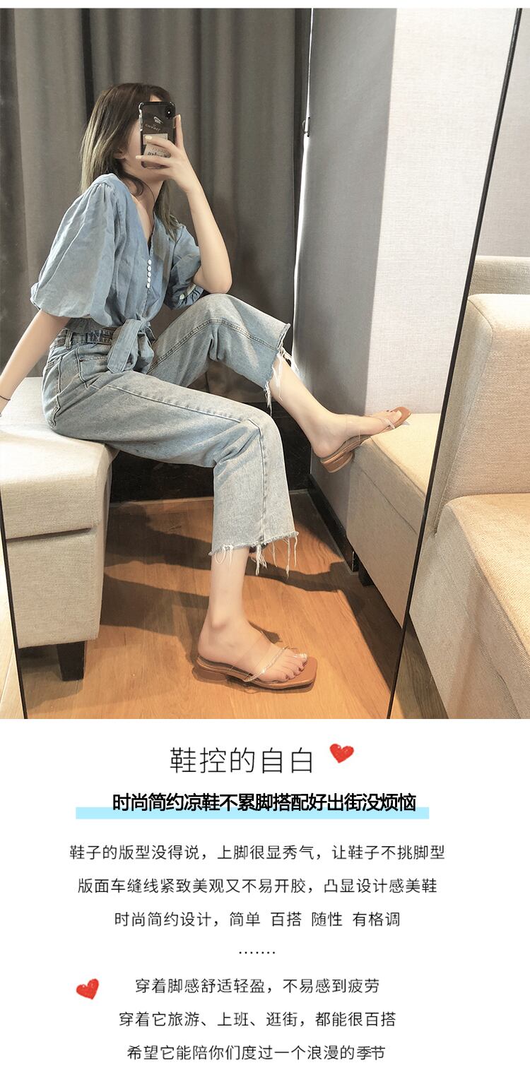 ネットセレブスリッパーレディースアウター2020夏新バージョンオールマッチ透明ラインストーンセット太いつま先サンダルレディース 部族の婦人靴11183405124