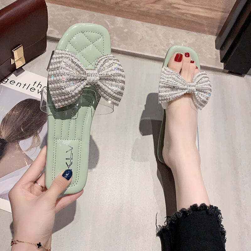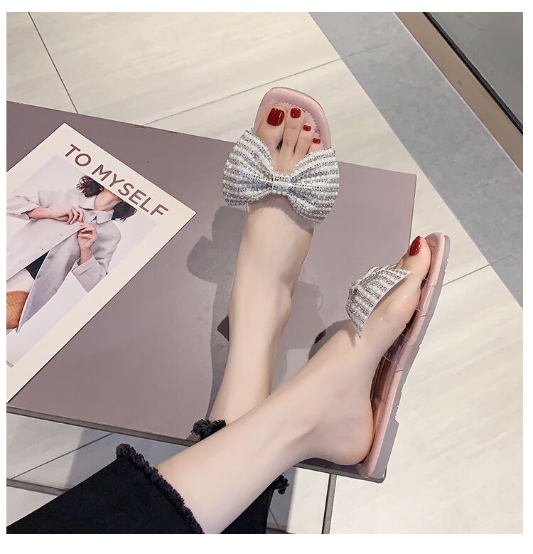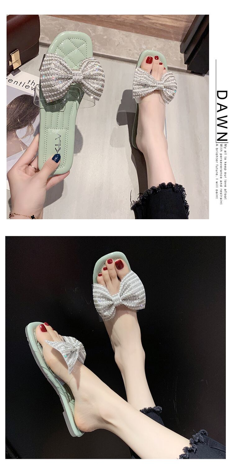 サンダルとスリッパの女性2020年の新しい夏の服ファッションラインストーンの弓オープントゥフラットボトムカジュアルオールマッチビーチサンダルの女性 部族の婦人靴55144809850