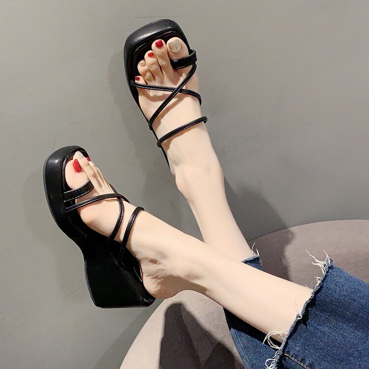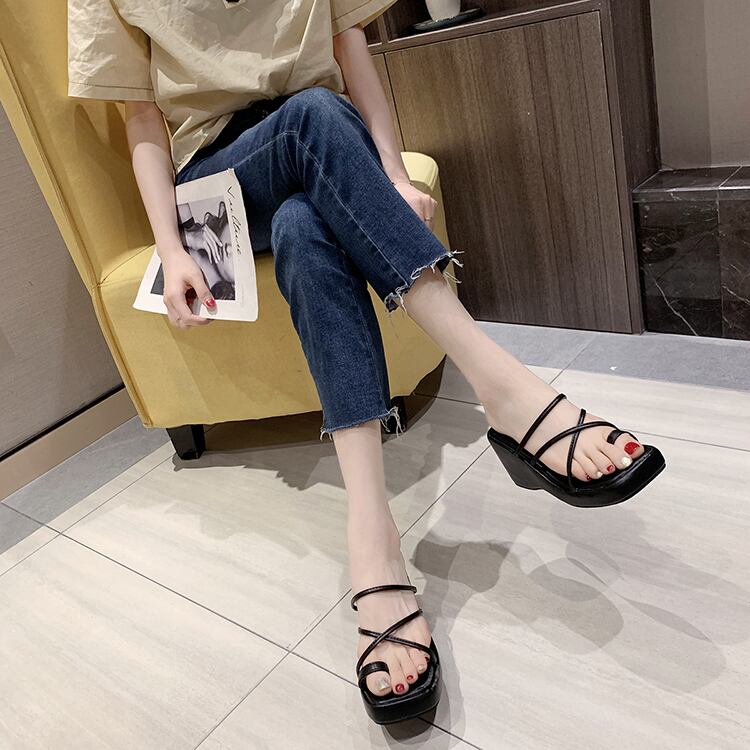 サンダルとスリッパの女性用アウターウェア2020年夏の新バージョンのスクエアトゥオールマッチトゥネットレッドスロープ、フェアリースタイルのハイヒール 部族の婦人靴25088737295