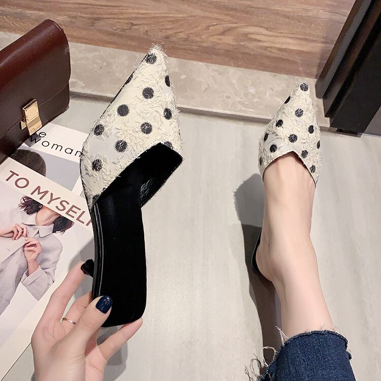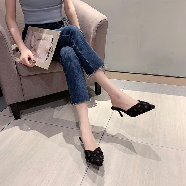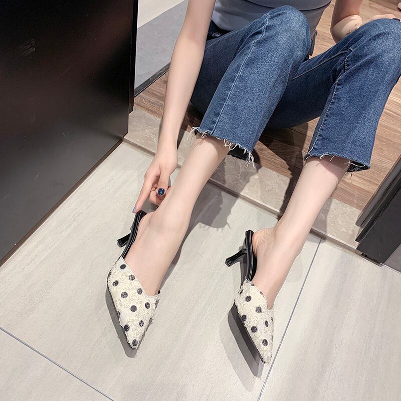 ネット赤いスリッパ女性instideスーパーファイア2020新しい夏のファッション包頭ハーフドラッグスティレットワイルドハイヒールミュール 部族の婦人靴94131096507