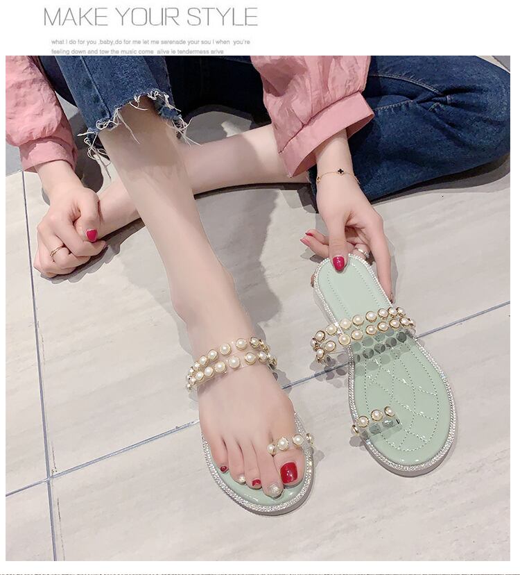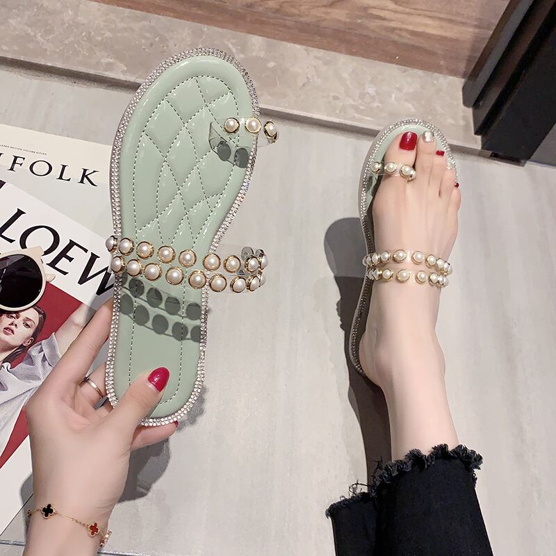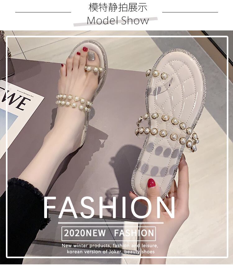 ネットレッドインタイドパールフェアリースタイルのカジュアルビーチサンダルとスリッパのビーチサンダル女性2020新しい夏バージョン 部族の婦人靴42587645864