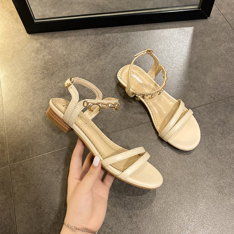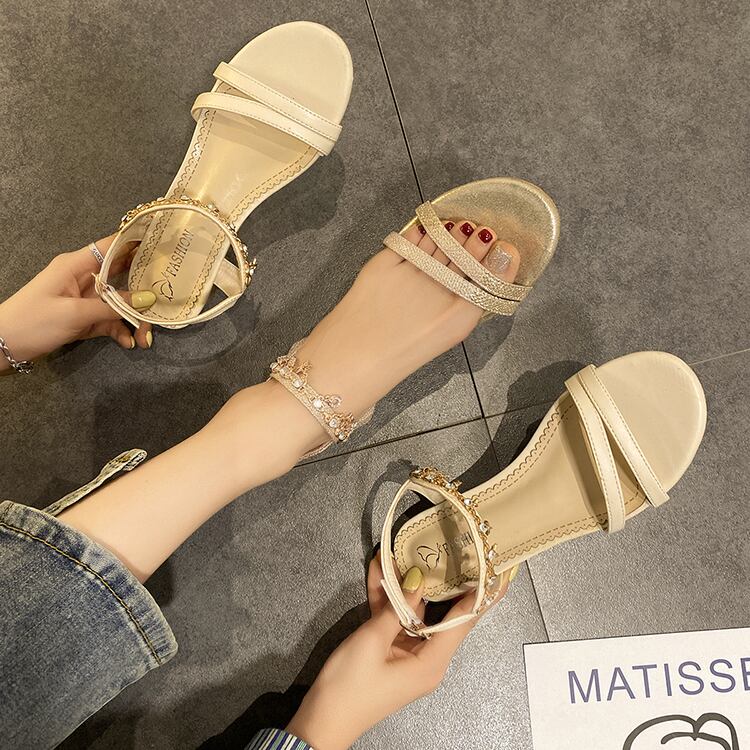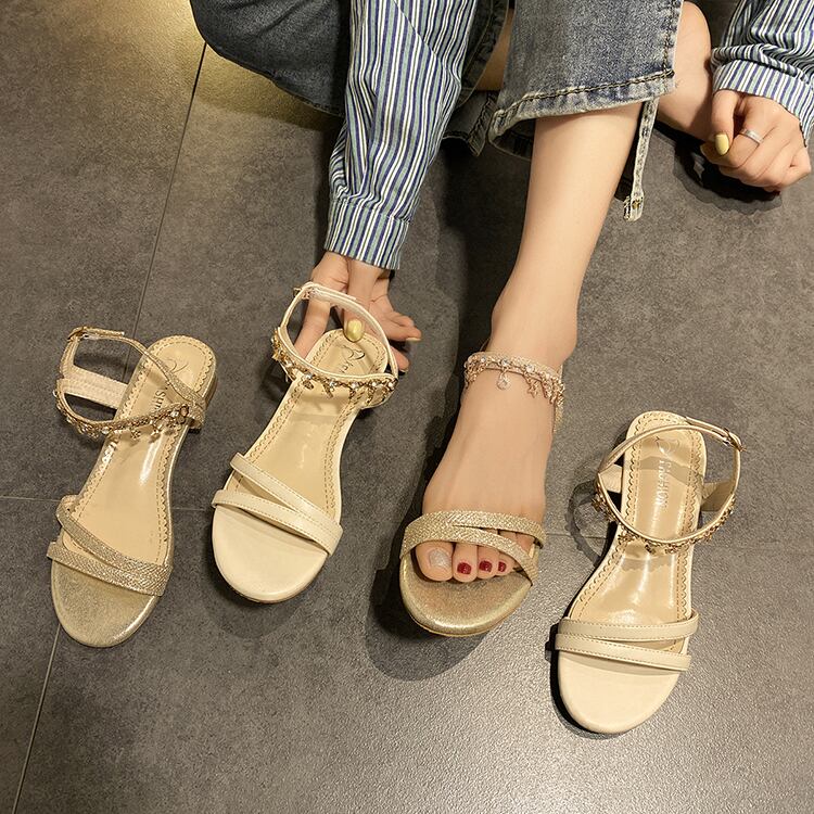 厚いヒールのサンダルの女性2020年夏の新しいinsバージョンのラインストーンファッションワードバックルフェアリースタイルのローマの靴の女性 部族の婦人靴65178108801