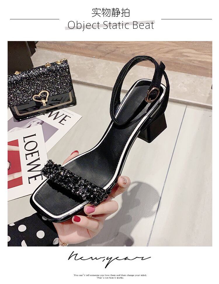 一言ベルトサンダル女性2020新しい夏のファッションフェアリースタイルネット赤いラインストーン厚いヒールオールマッチファッショナブルなハイヒール 部族の婦人靴56653361644