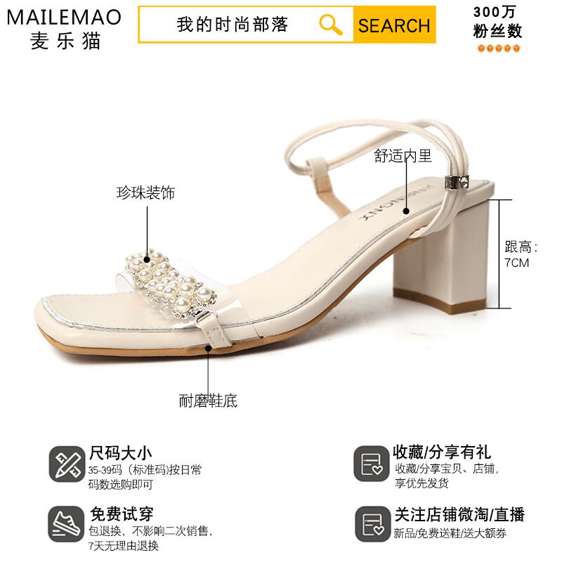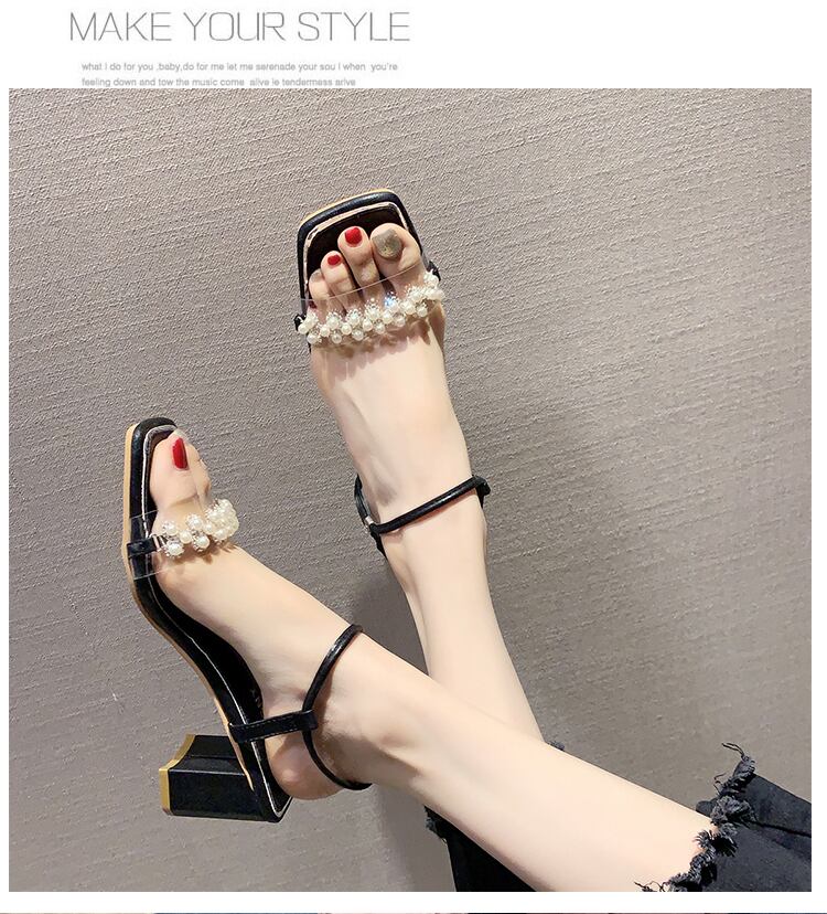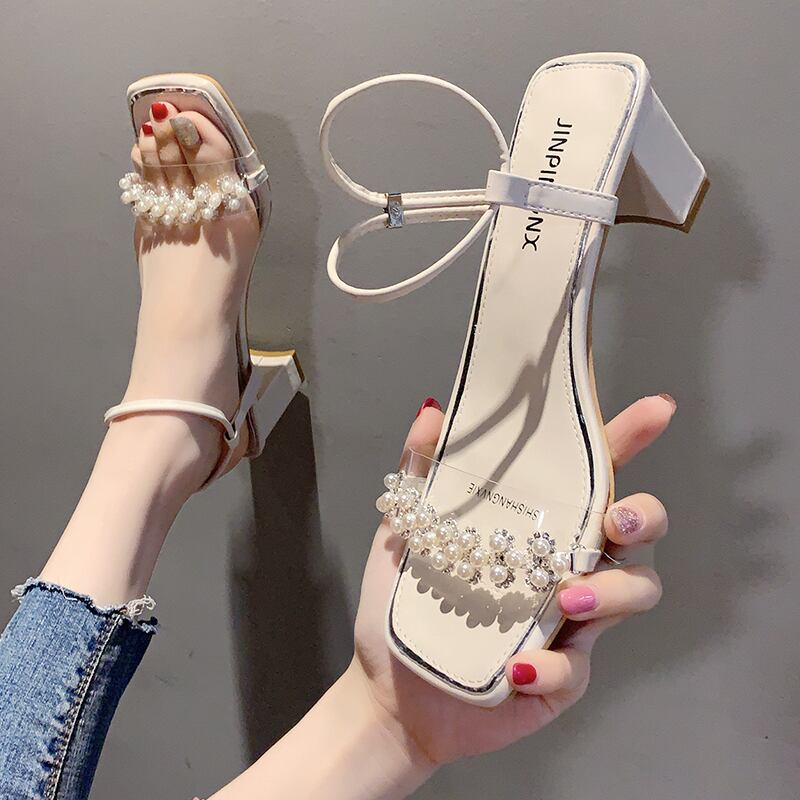ネットレッドシックヒールサンダルレディース2020バージョンの新しい夏のファッションパールハイヒールの妖精スタイルのローマの靴のトレンド 部族の婦人靴63737393264