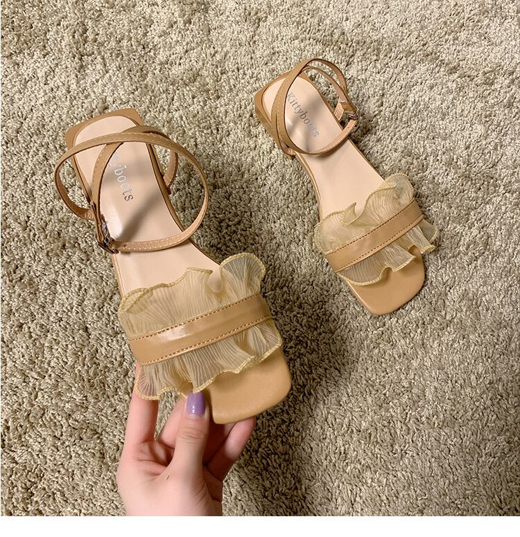フラットサンダルレディース2020ニュースタイルサマーファッションレディーススクエアトゥシンプルスーパーファイアクロスストラップローマンシューズトレンド 部族の婦人靴91375547131