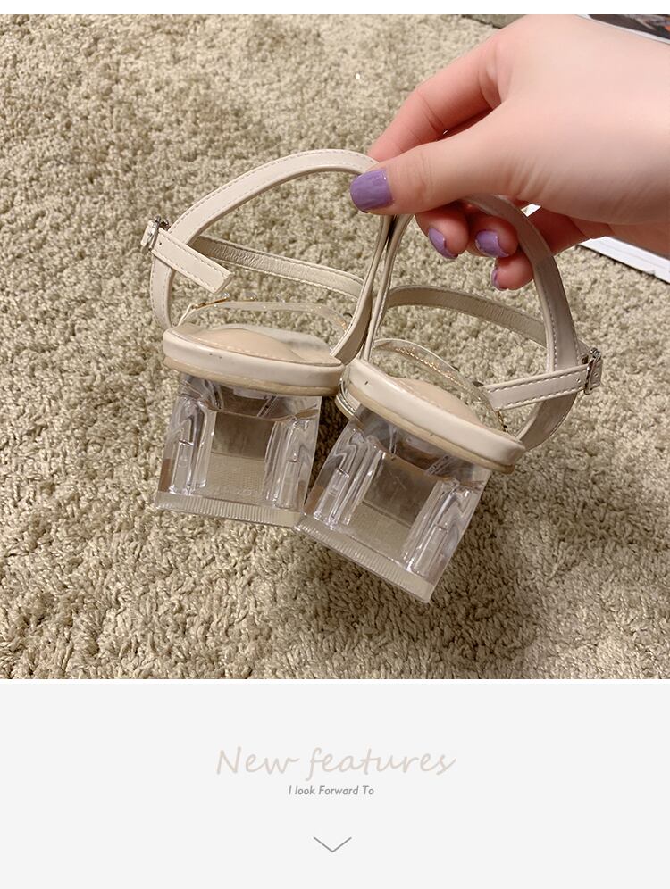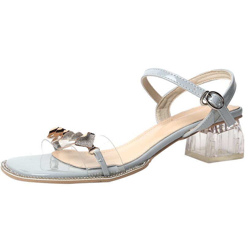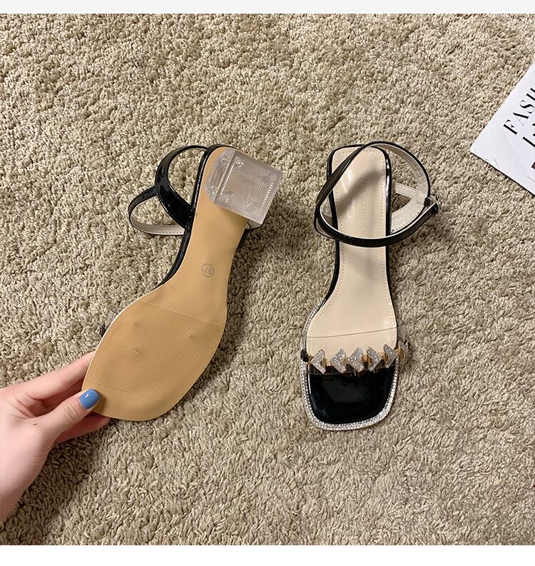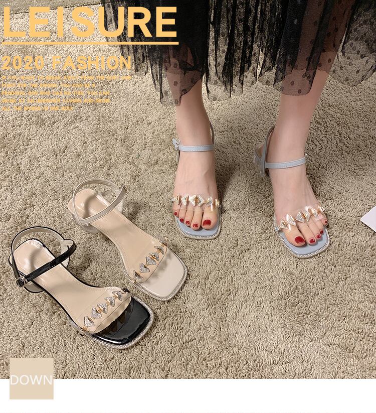 サンダルレディース2020新しいバージョンの夏のファッションネットレッドクリスタルミッドヒールスクエアトゥ、厚いヒールのローマの女性の靴 部族の婦人靴74227145004