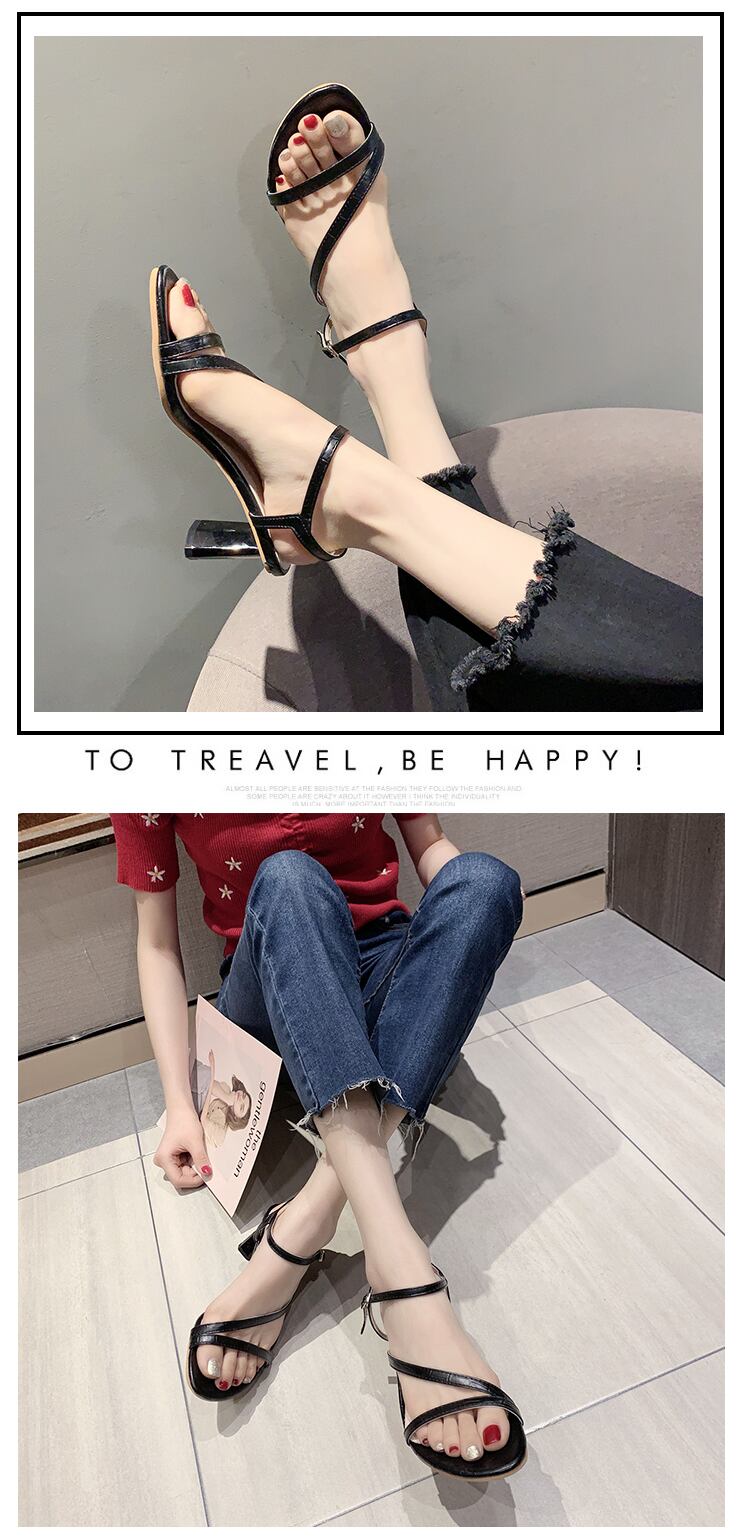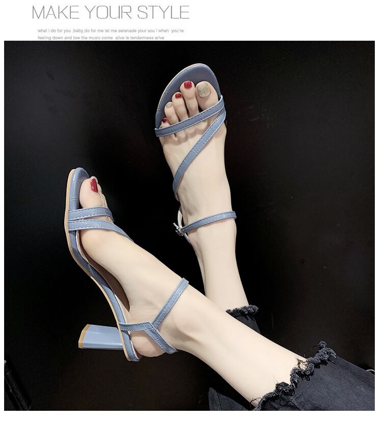 フェアリースタイルのサンダル女性2020年夏新バージョンのワードバックルベルトネットレッドシックヒールハイヒールワイルドローマンシューズ 部族の婦人靴98758105086