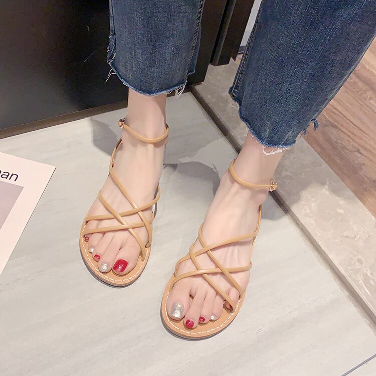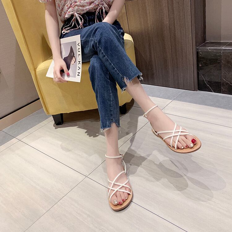 ネットレッドサンダルレディース2020新春ワイルドサマーオープントゥビーチシューズバケーション平底ファッションローマンシューズトレンド 部族の婦人靴29789619605