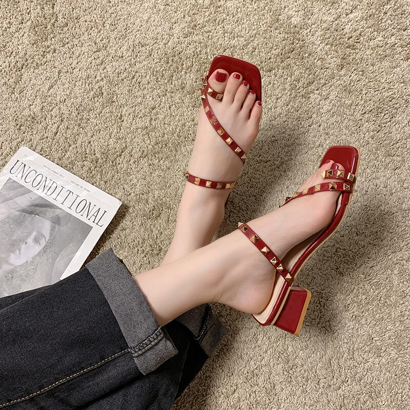 フェアリースタイルのサンダルとスリッパの女性2020新しいファッションワイルドネットレッドサマーリベットミッドヒールビーチサンダルの女性 部族の婦人靴97731970202