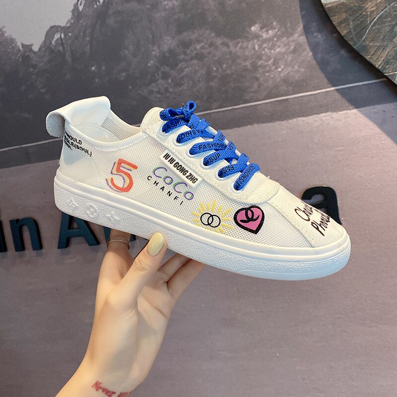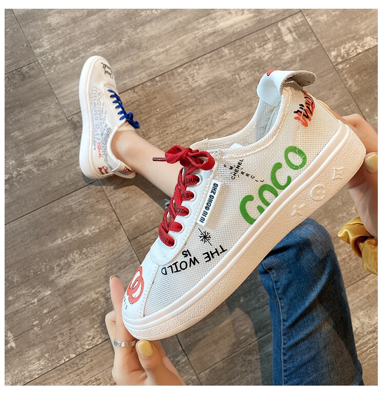 リトルホワイトシューズ2020新しいサマーシューズ女性ファッションワイルドネットレッドレース学生フラットカジュアルトレンディシューズ 部族の婦人靴9541625855