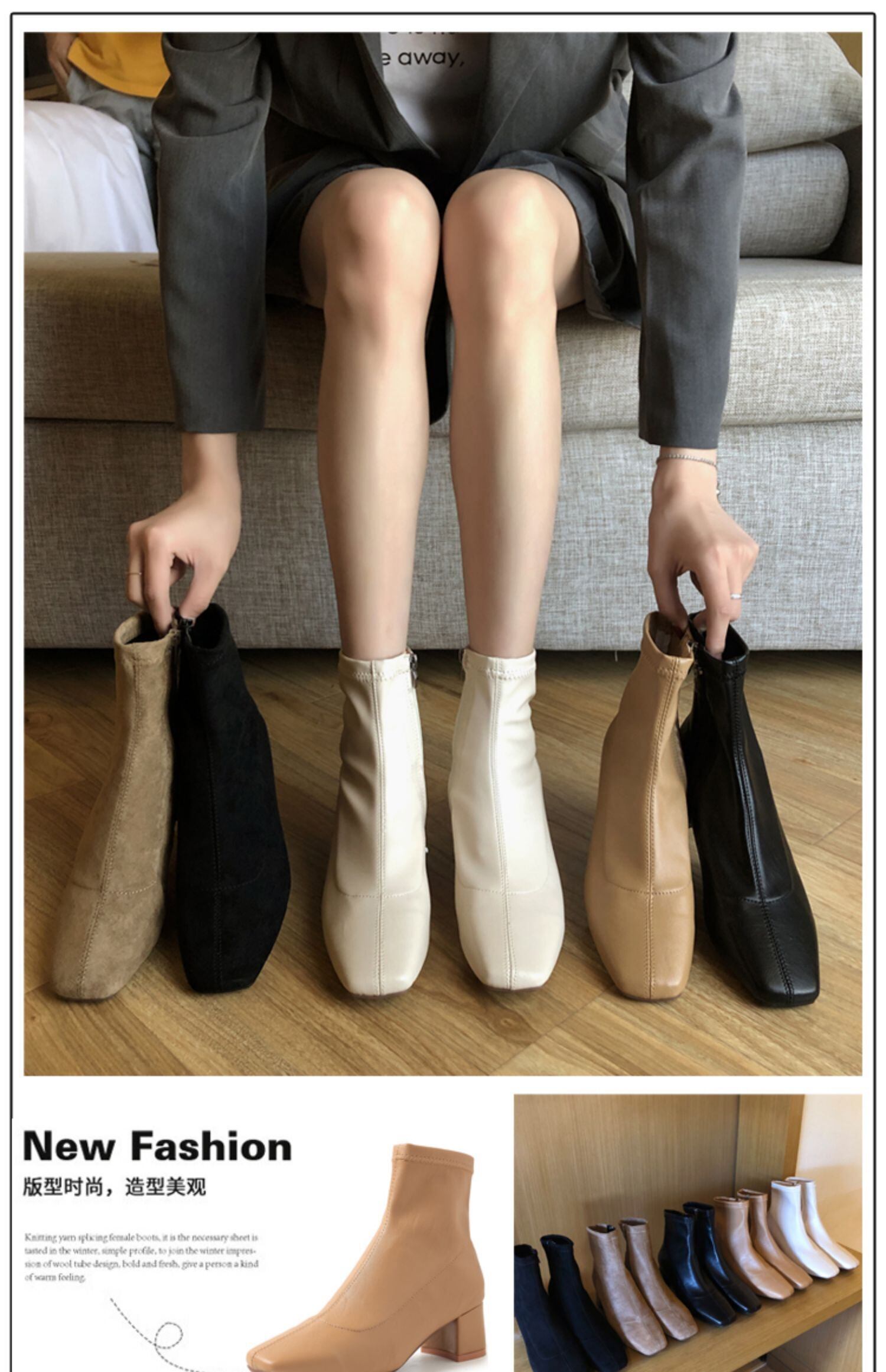 ブーツ2020新しい厚いヒールショートブーツトレンディなイン薄い靴ネットレッドマーティンブーツ野生のハイヒールの女性の春と秋のシングルブーツ 部族の婦人靴7937568713