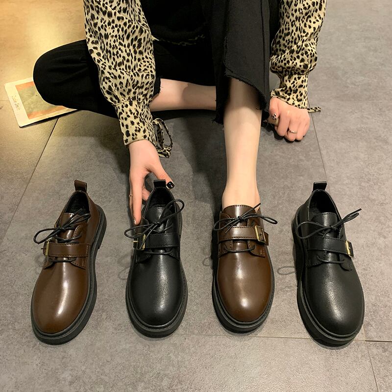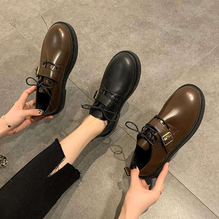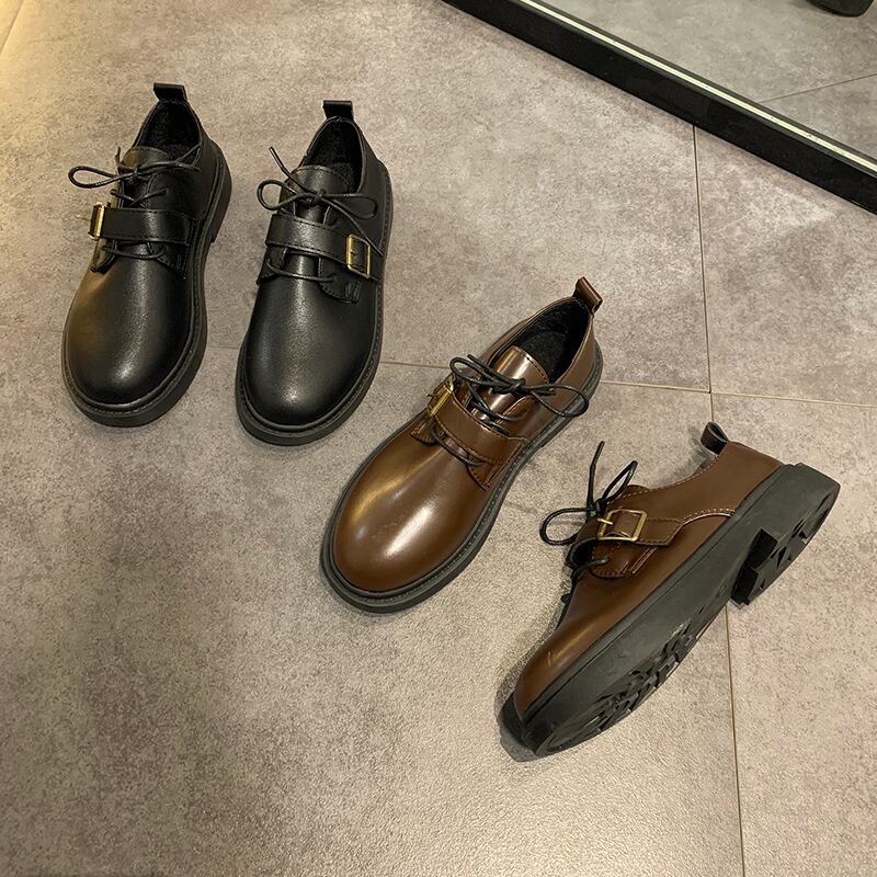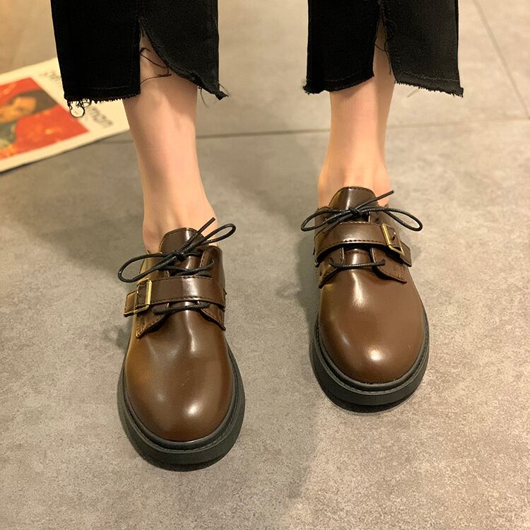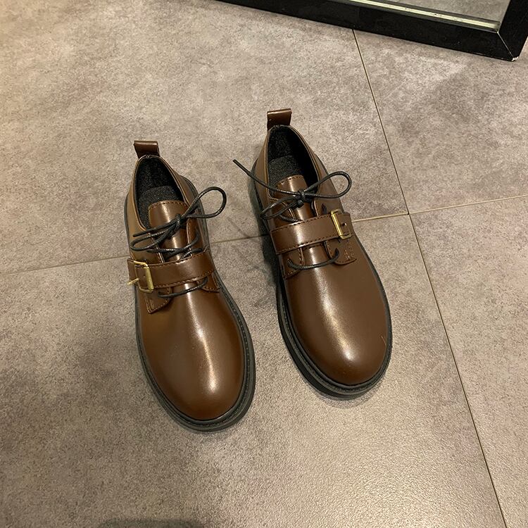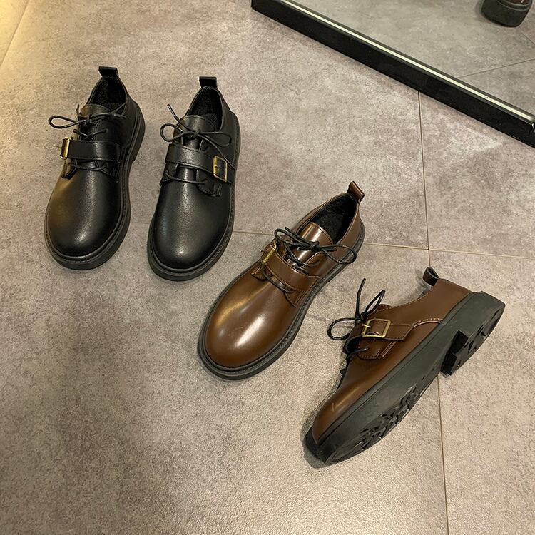 シングルレディーススプリングスタイルソリッド カラーバックルレザー 靴 シューズ 春物 ラウンドトー ソリッドカラー 部族の婦人靴29624105053
