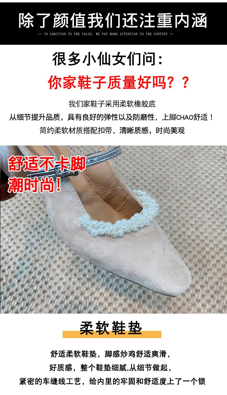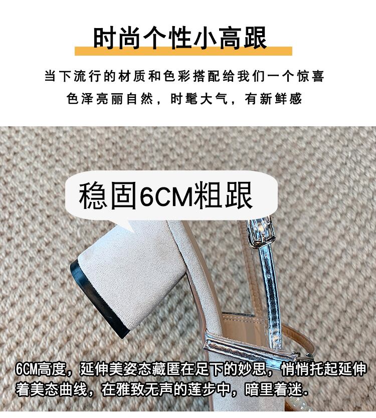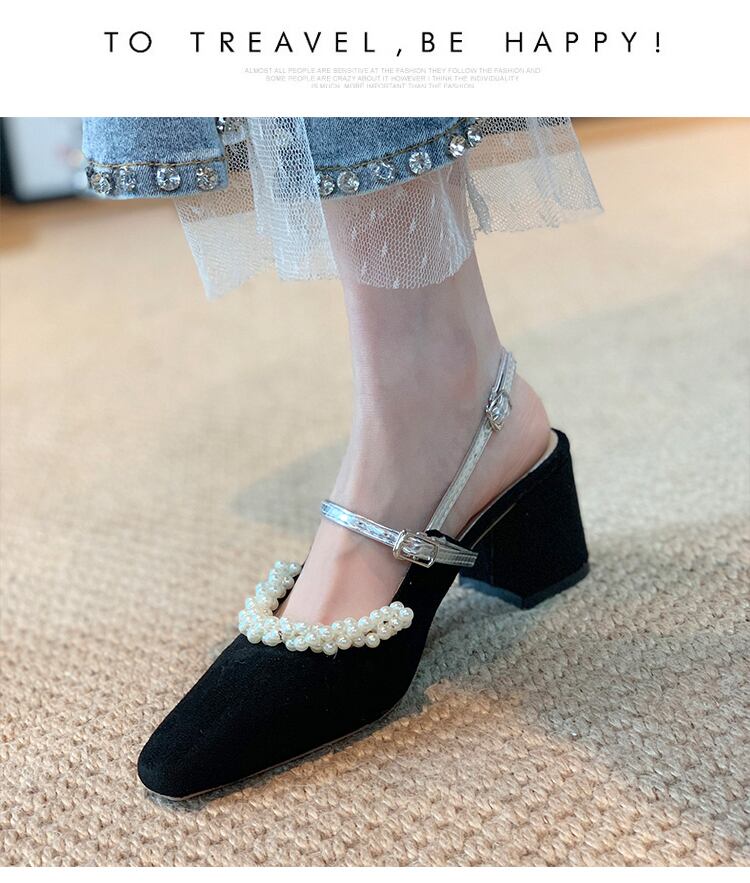 サンダルレディーススプリングパールヒール ハイヒール 靴 シューズ 春物 真珠 スクウェア 部族の婦人靴37692050346