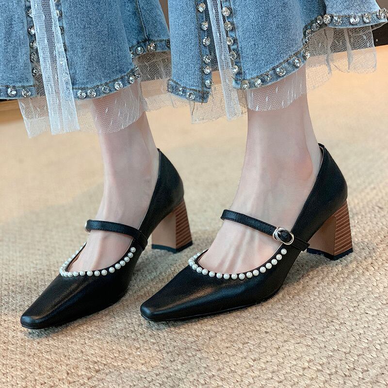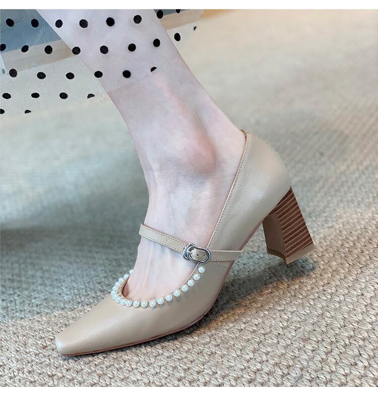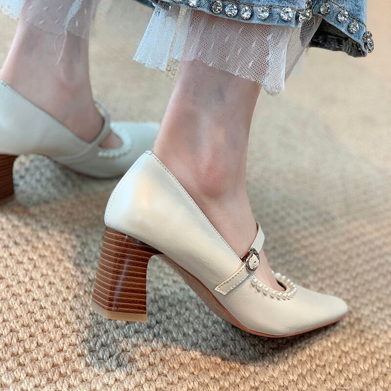 ヒールレディーススプリングパールシングルレッド 靴 シューズ 春物 真珠 部族の婦人靴13221925588