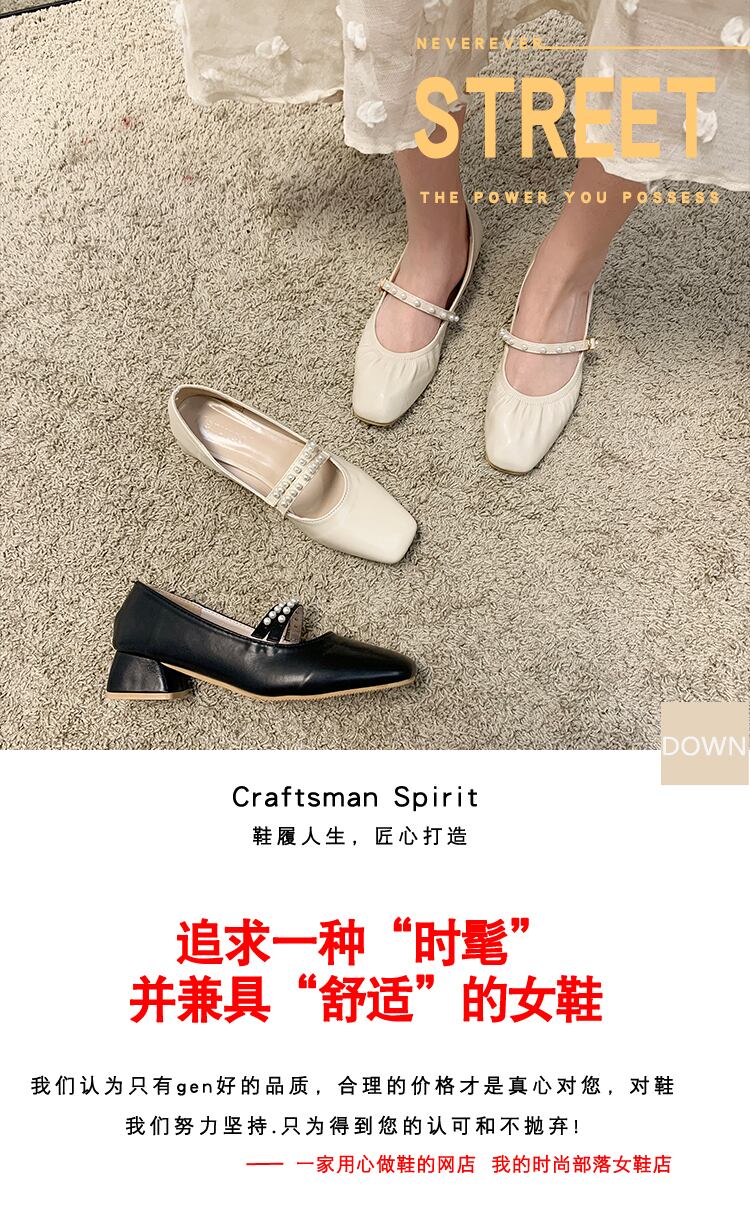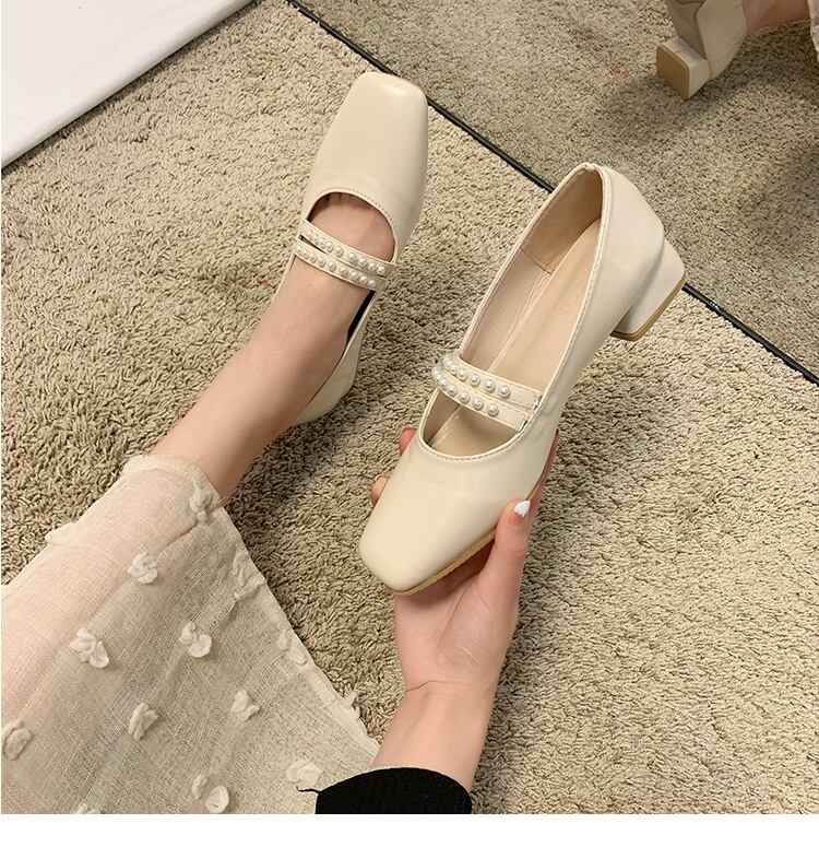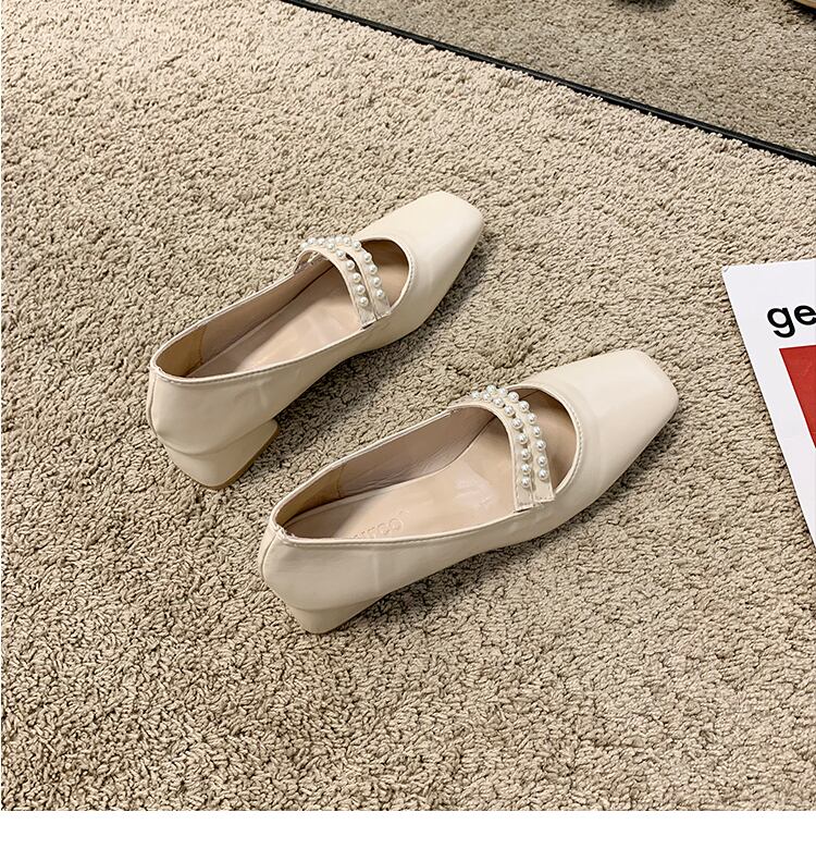 シングルスプリングスタイルパール 靴 シューズ 春物 真珠 スクウェア 部族の婦人靴32153986283