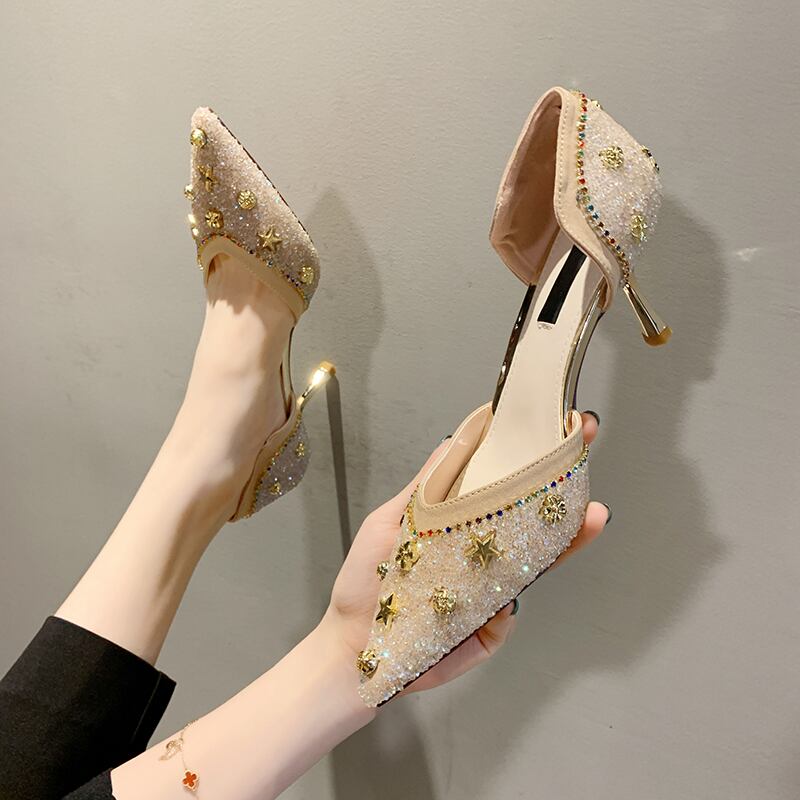 ヒールスプリングスタイルラインストーンシングル 靴 シューズ ハイヒール 春物 部族の婦人靴28453280298