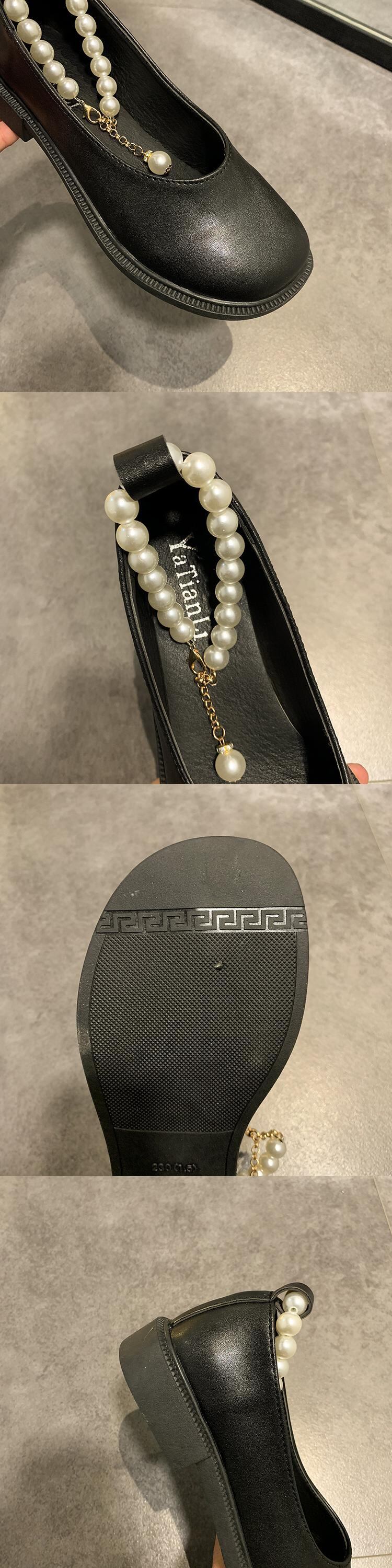 シングルレディーススプリングレザーバックルパールスタンダードスタイル 靴 シューズ レトロ 春物 真珠 部族の婦人靴77158256004