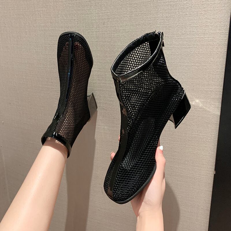 ブーツサマースタイルメッシュ薄手レッドブラックシングル 靴 シューズ 夏物 スクウェア 部族の婦人靴77701322904