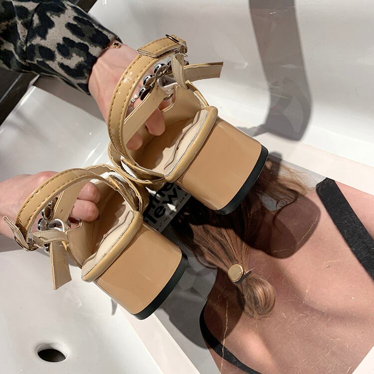 ヒールサマースタイルレッドサンダル ハイヒール 靴 シューズ 夏物 スクウェア 部族の婦人靴71710350919