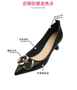 シングルメタルバックルヒールブラック 靴 シューズ ハイヒール 部族の婦人靴50287104678