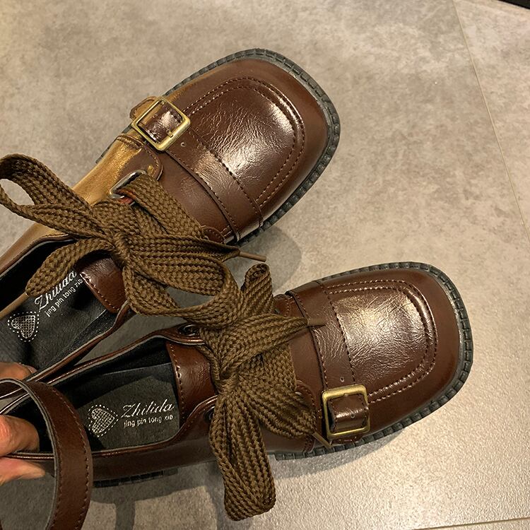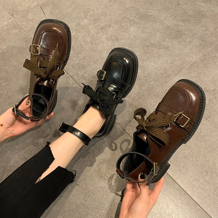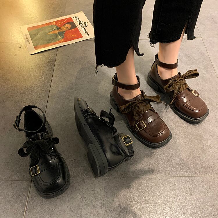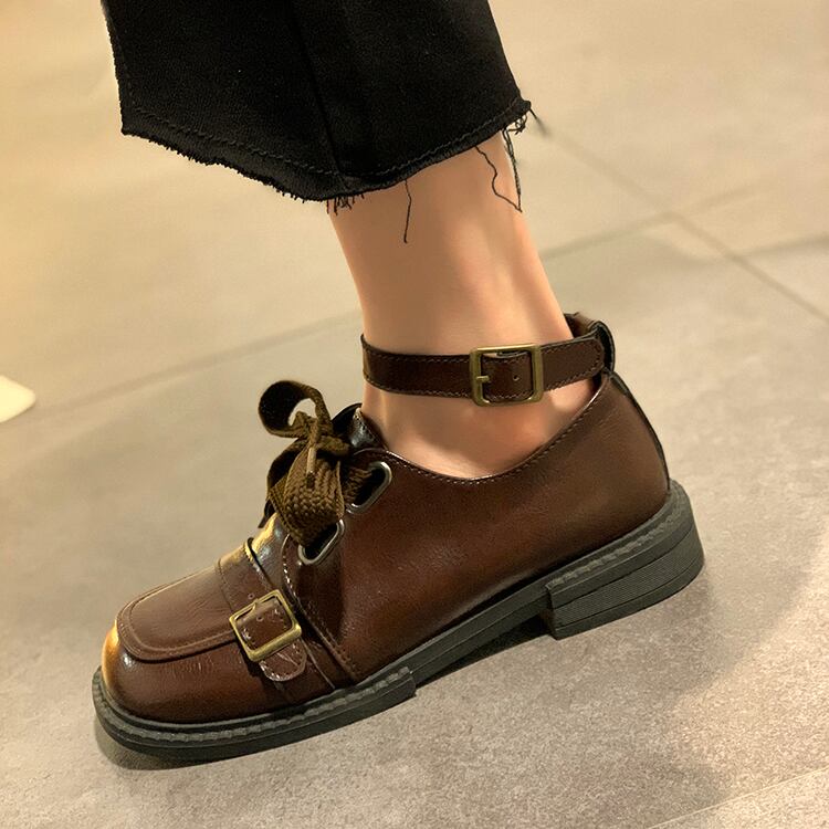 シングルスプリングスタンダードベルト バックルスタイルレザー 靴 シューズ レトロ 春物 ハーネス スクウェア 部族の婦人靴61253772464