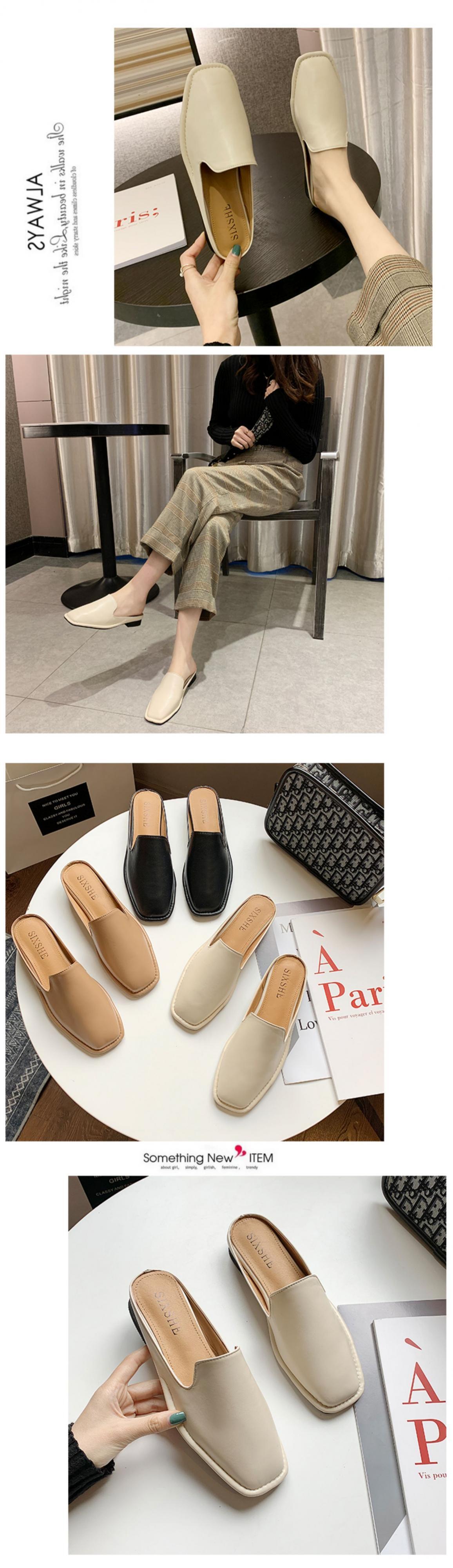 ミュールスプリングソリッド カラー 靴 シューズ 春物 ソリッドカラー スクウェア 部族の婦人靴14294506164