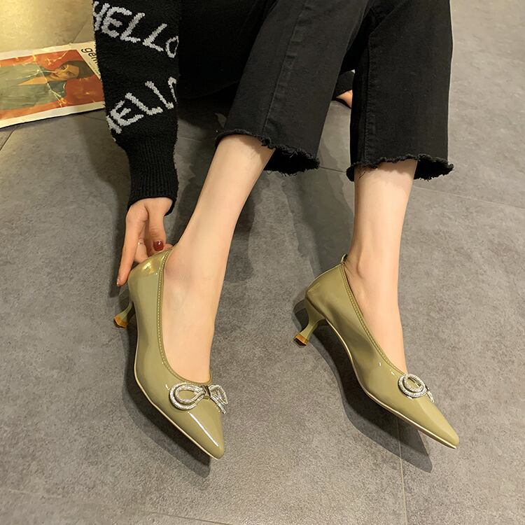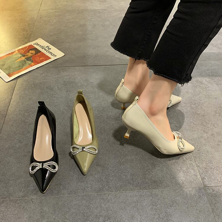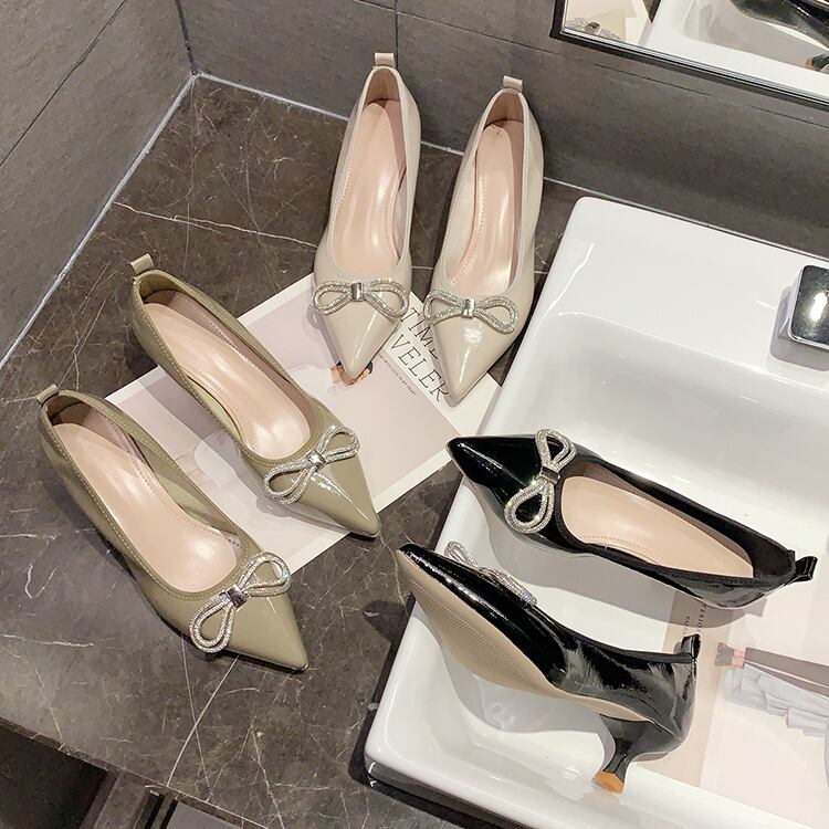 スプリングシングルラインストーン 靴 シューズ リボン ハイヒール エレガント 春物 部族の婦人靴53318275949