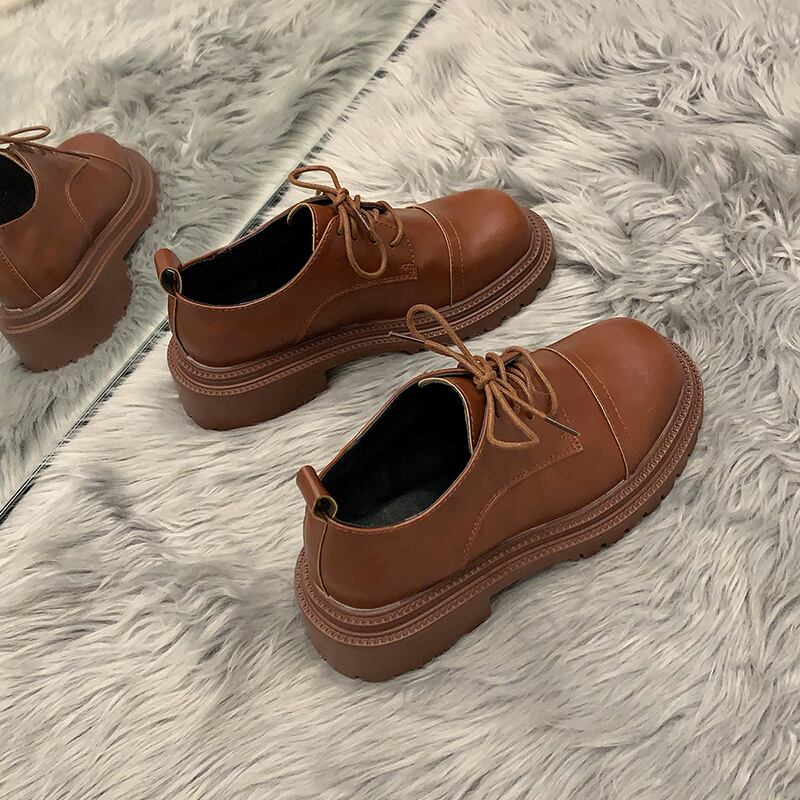 レディーススプリングレッドスタイルレザー 靴 シューズ レース 春物 ラウンドトー レースアップ 部族の婦人靴33097275221
