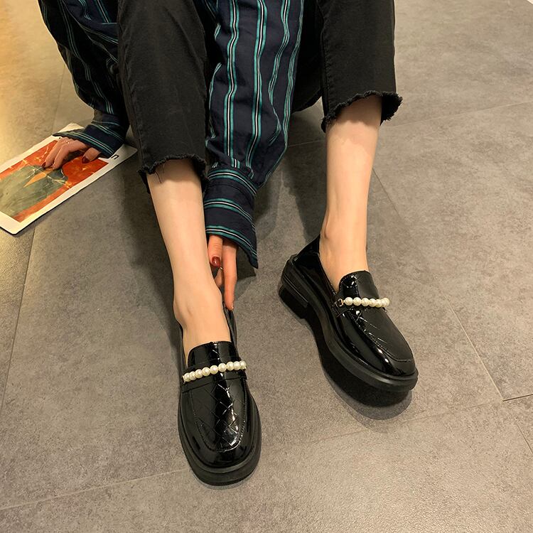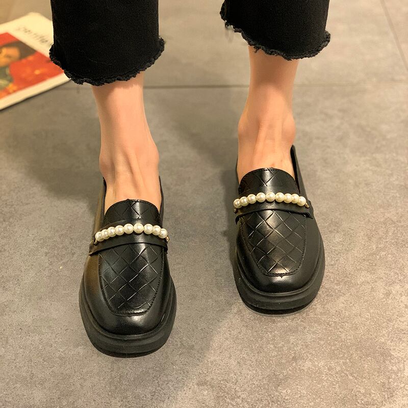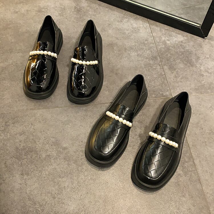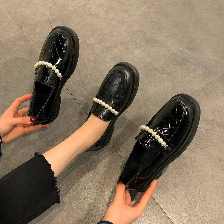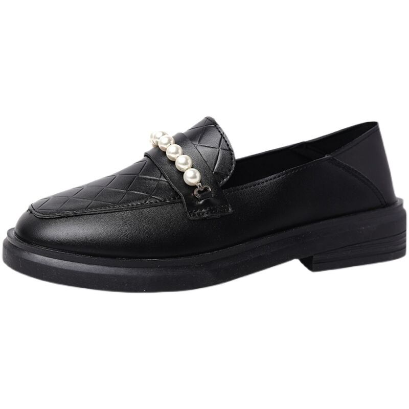 パールレザースタイルスプリングブラックシングル 靴 シューズ ローファー 春物 真珠 部族の婦人靴7924393921
