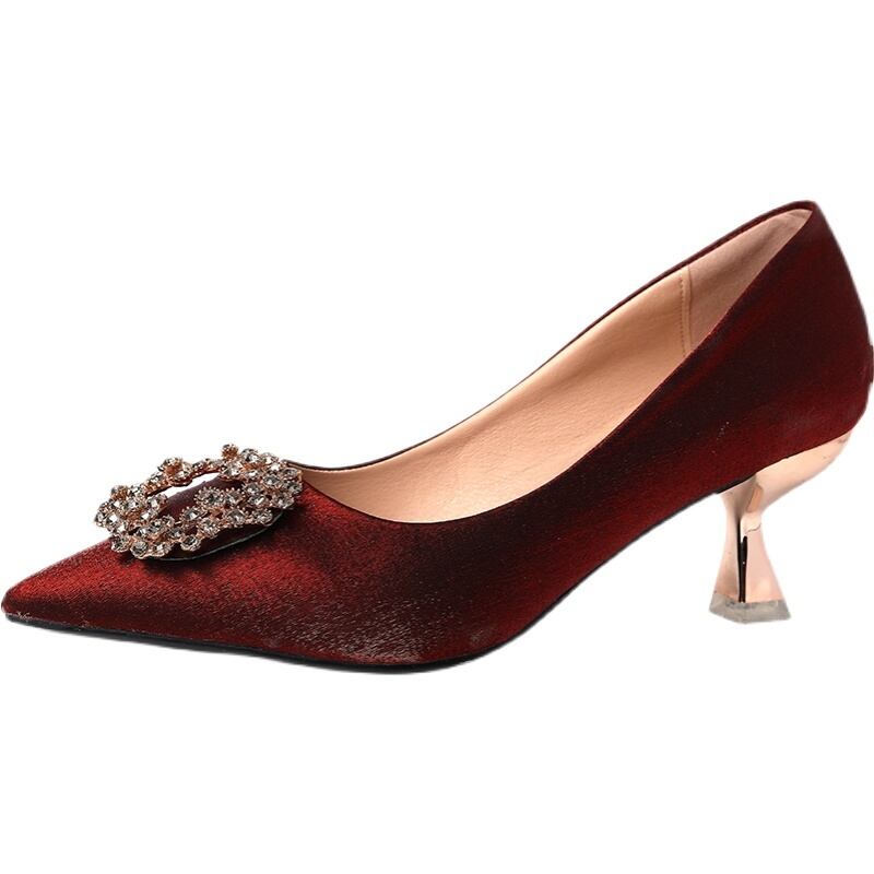 ヒールレディーススプリングレッドシングル 靴 シューズ ハイヒール 春物 部族の婦人靴3882822075